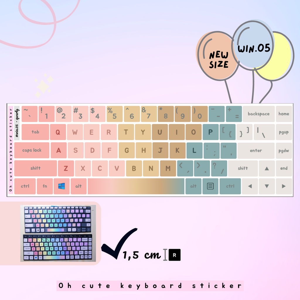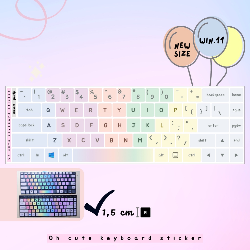 OH CUTE Qwerty English Keyboard Sticker for Windows - Aesthetic Palette Color Vinyl Laminated