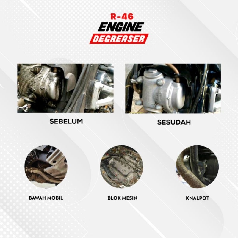 R46 Cairan Pembersih Kerak Oli Mesin Dan Karat Motor Mobil Penghilang Noda Engine Degreaser 500 Ml