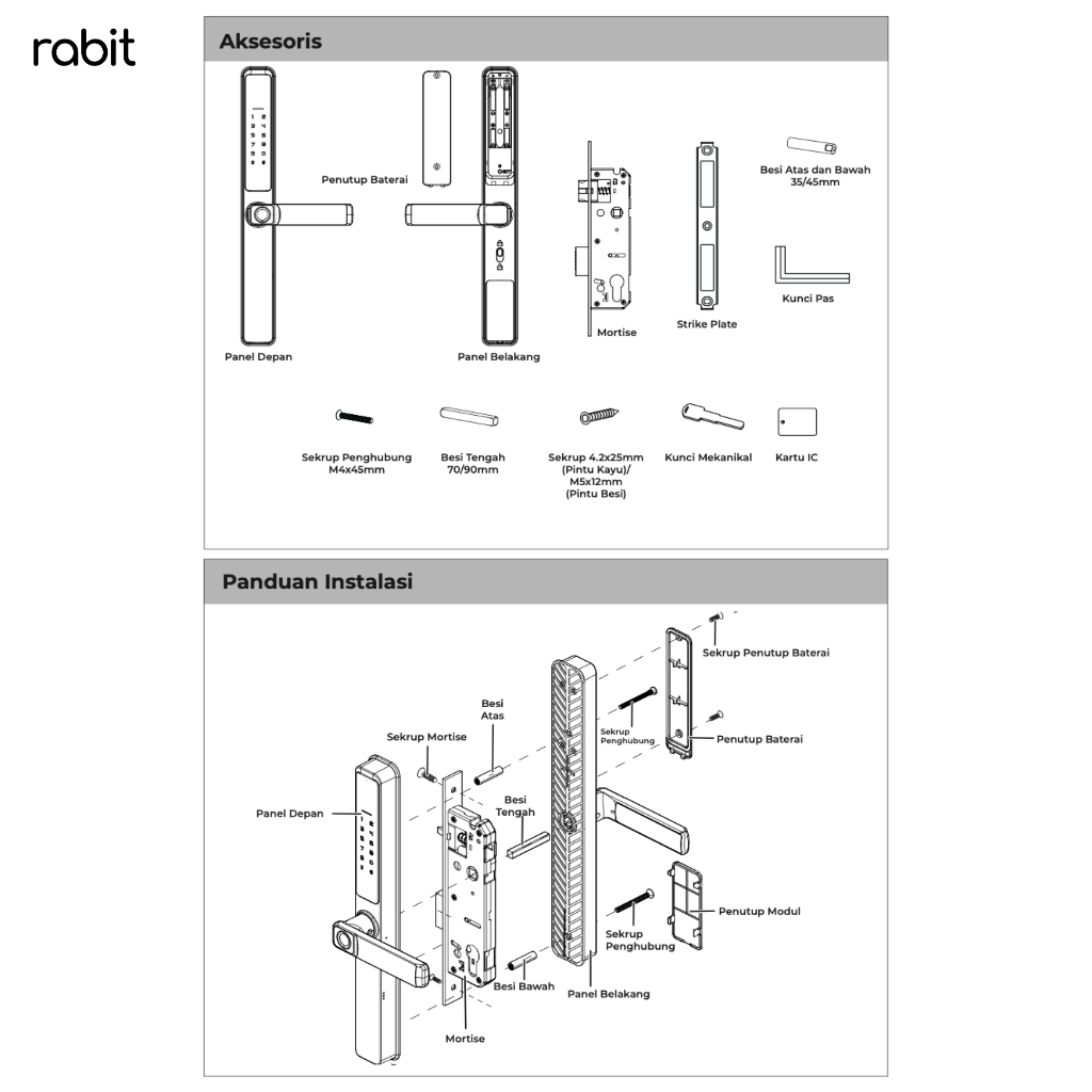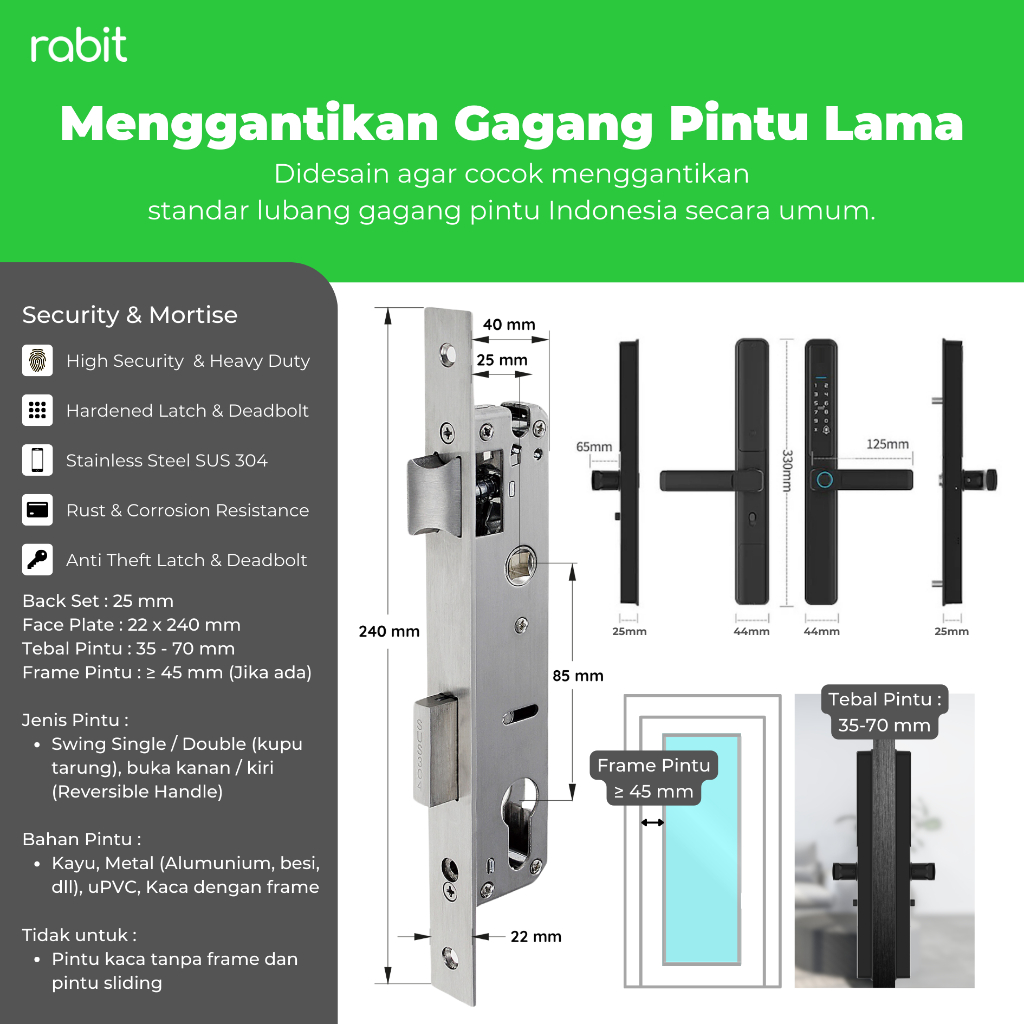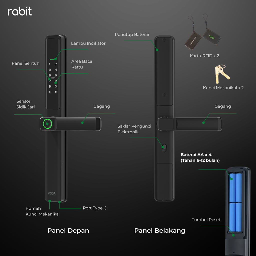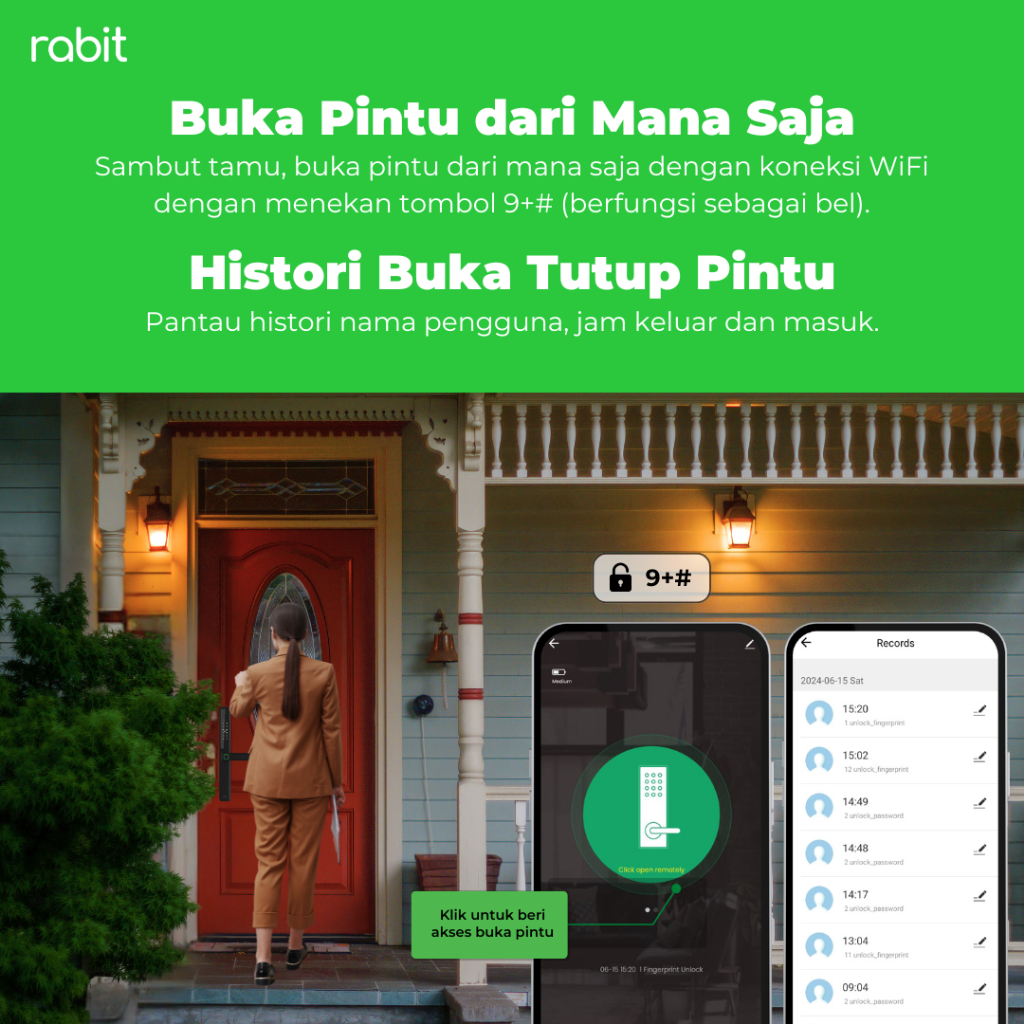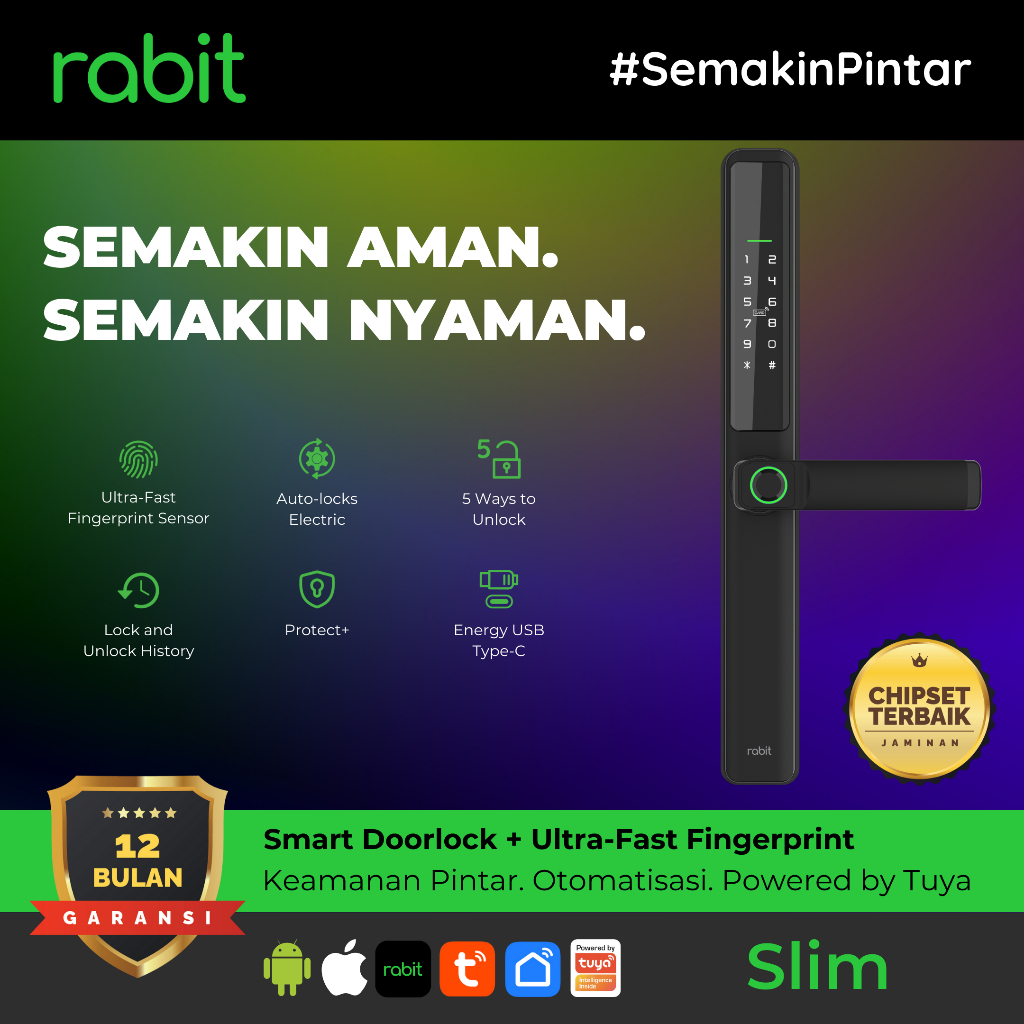 RABIT SMART DOOR LOCK SLIM KUNCI PENGUNCI PENGAMAN PINTU RUMAH PINTAR FINGERPRINT OTOMATIS PIN KODE DIGITAL