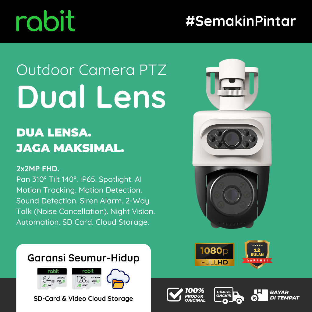 RABIT SMART IP CCTV CAMERA OUTDOOR PTZ WIDE ANGLE DUAL LENS WATERPROOF 2MP 3MP KAMERA DOOR BELL