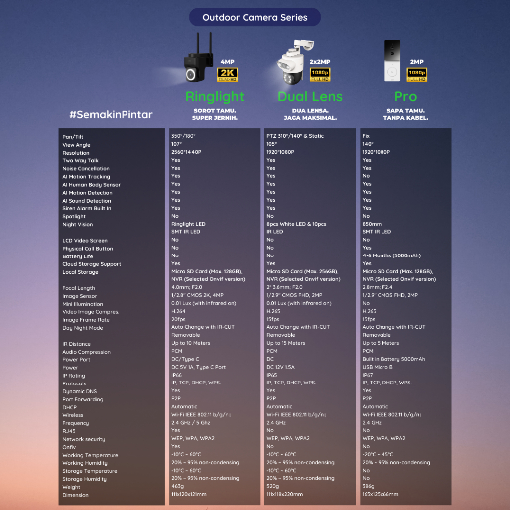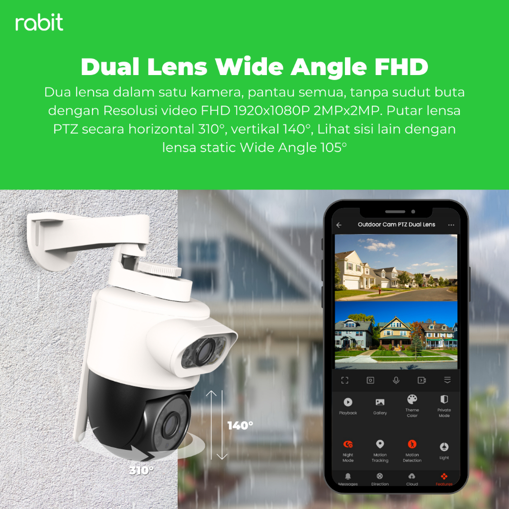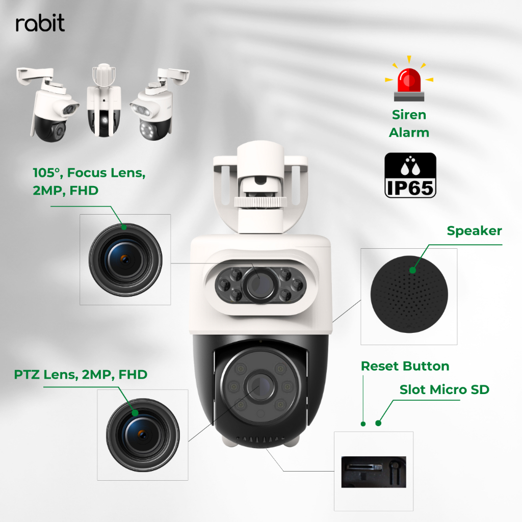 RABIT SMART IP CCTV WIFI CAMERA OUTDOOR FULL HD 2 MP DUAL LENS WATERPROOF PTZ WIDE ANGLE