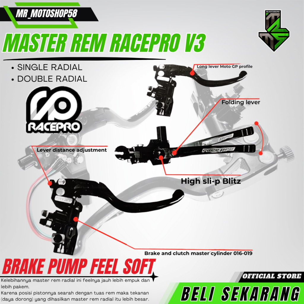 RACEPRO MASTER BRAKE PUMP SINGLE RADIAL MASTER REM RACE PRO R15V3 ZX 25 VARIO NINJA tabung minyak