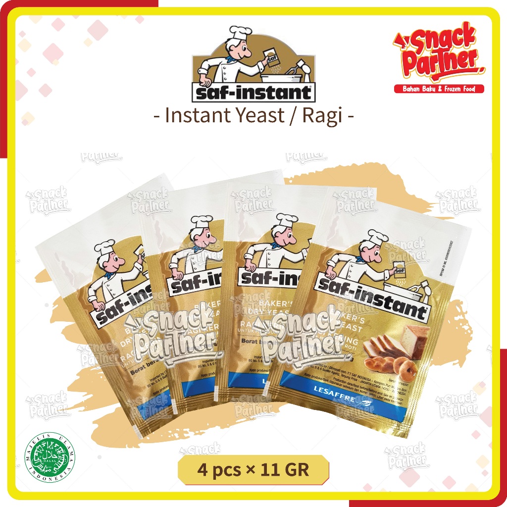 RAGI INSTANT Sachet (4 pcs x 11 gr) - Dry Instant Yeast / Ragi Kering Instan - Fermipan SAF Pakmaya Haan Pondan Pengembang Roti Kue Cake Donat Bakpao