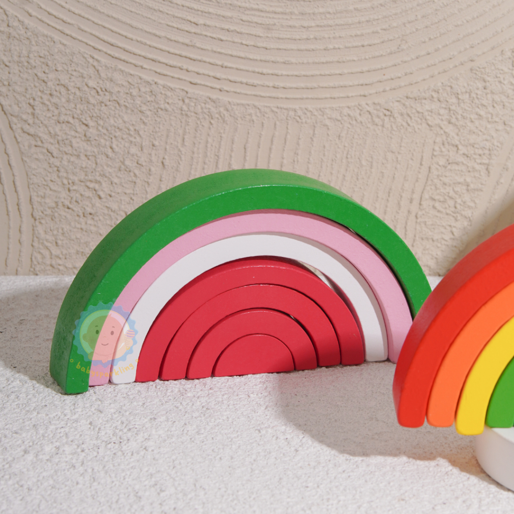 RAINBOW STACKER | Mainan montessori kayu rainbow block | Pelangi warna warni edukasi