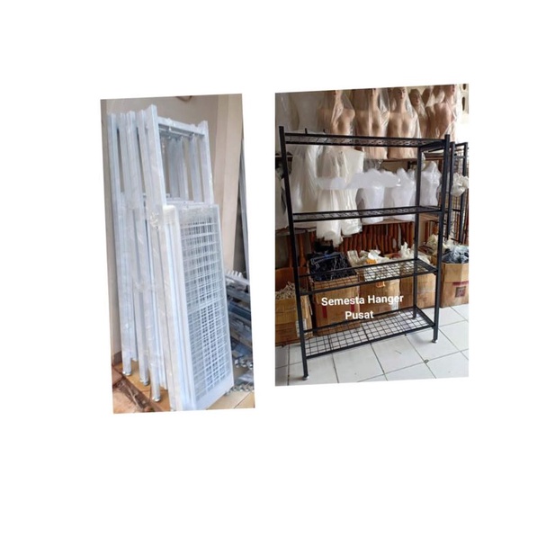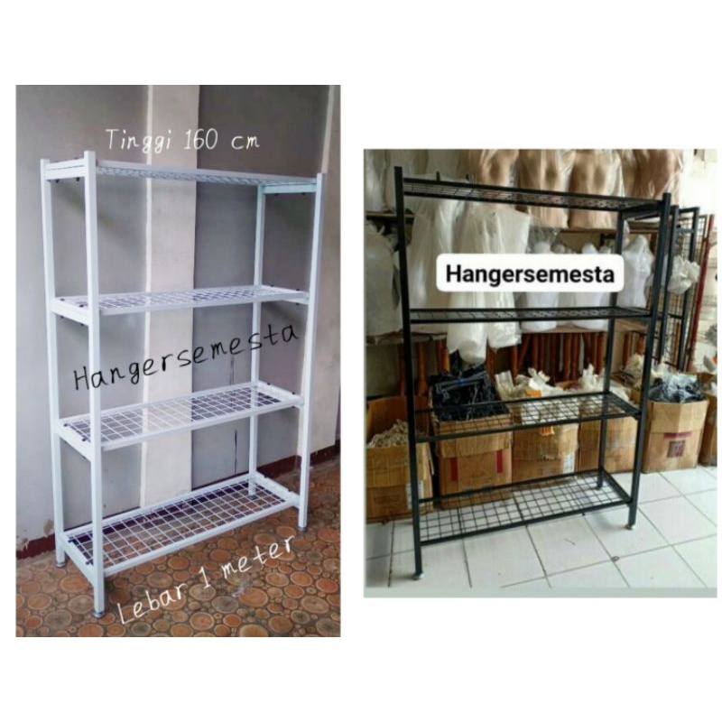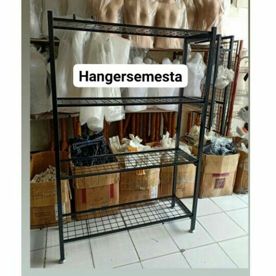 RAK BESI 4 SUSUN HITAM KNOCK DOWN