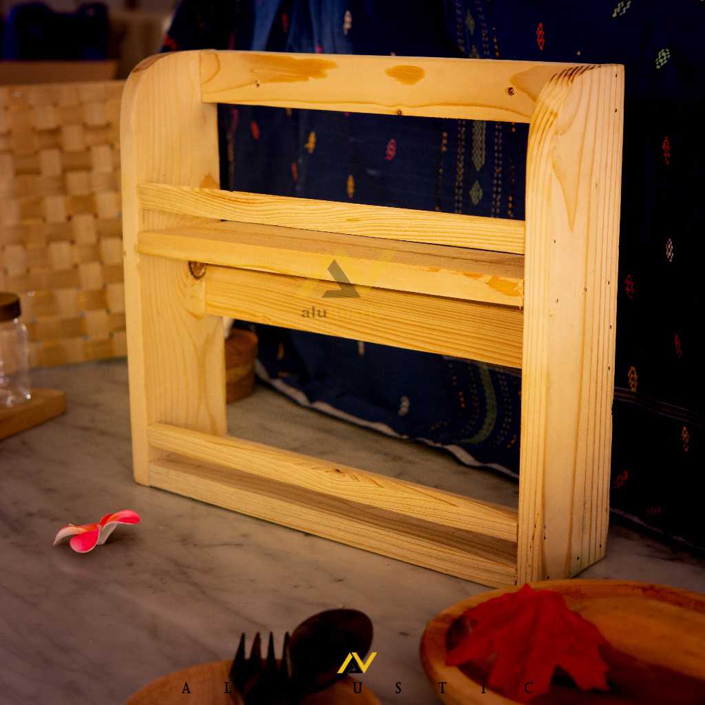 RAK BUMBU DAPUR KAYU 2 TINGKAT | RAK GANTUNG KAYU RUSTIC SERBAGUNA | TEMPAT BUMBU RAK PENYIMPANAN 2 TINGKAT KAYU JATI BELANDA