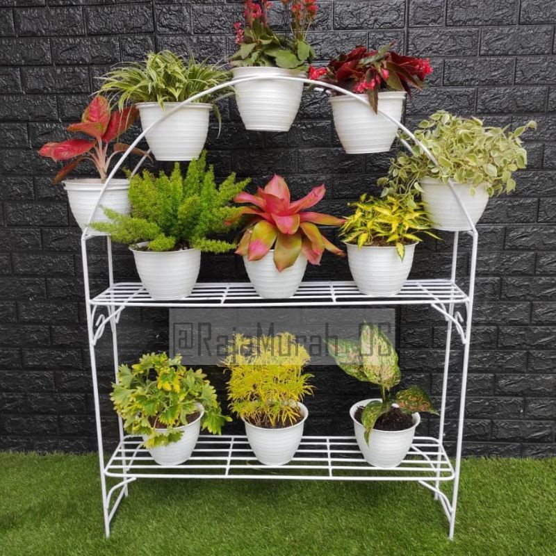 RAK BUNGA BESI MINIMALIS +12 DUDUKAN POT BUNGA / STANDING POT TANAMAN HIAS AGLONEMA