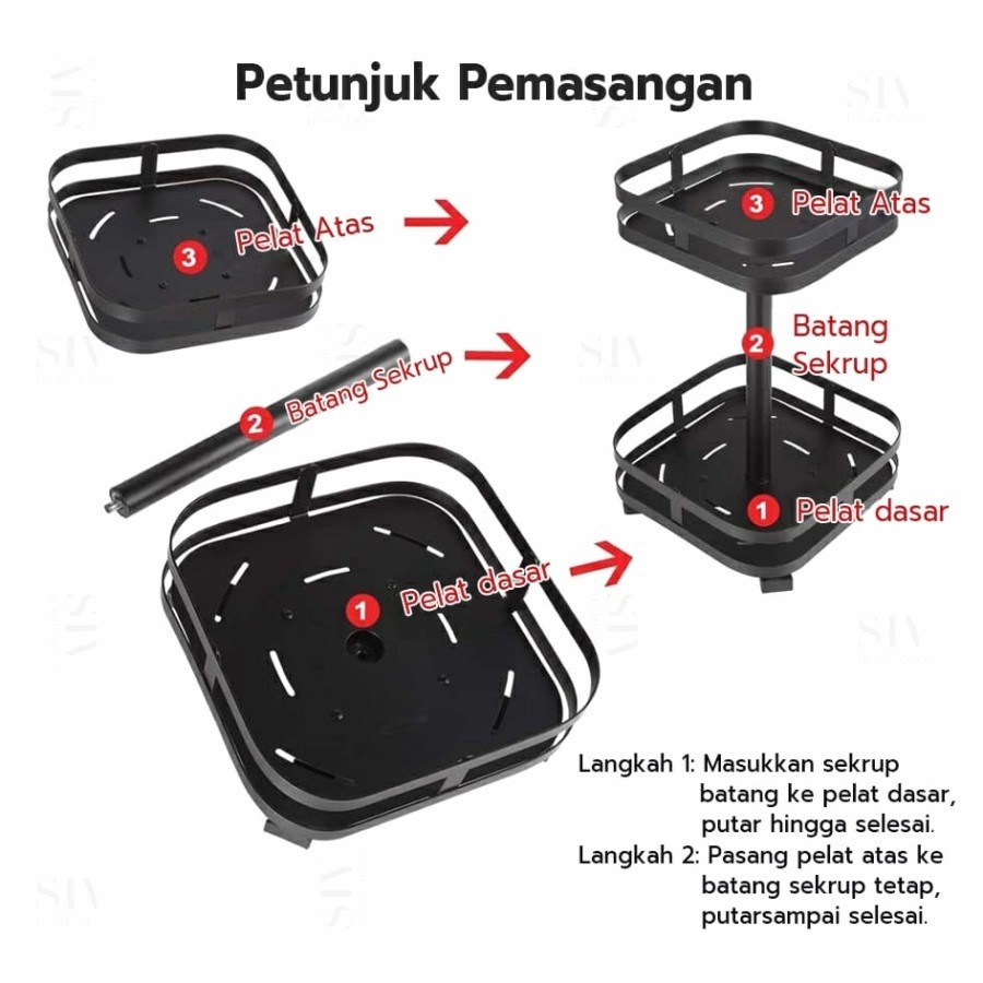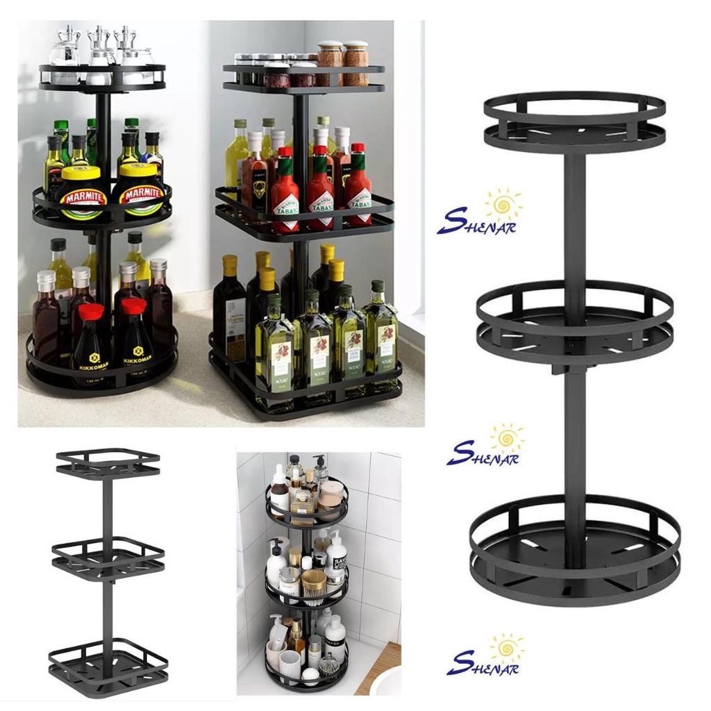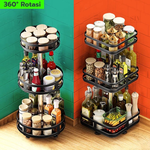 RAK DAPUR BUMBU PUTAR BULAT RUBY - RAK PUTAR 3 SUSUN PERSEGI NORDIC