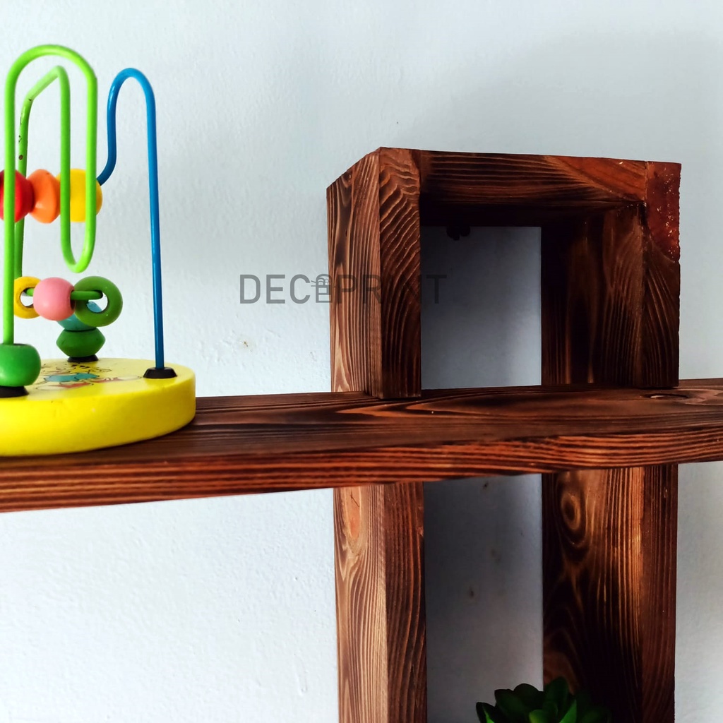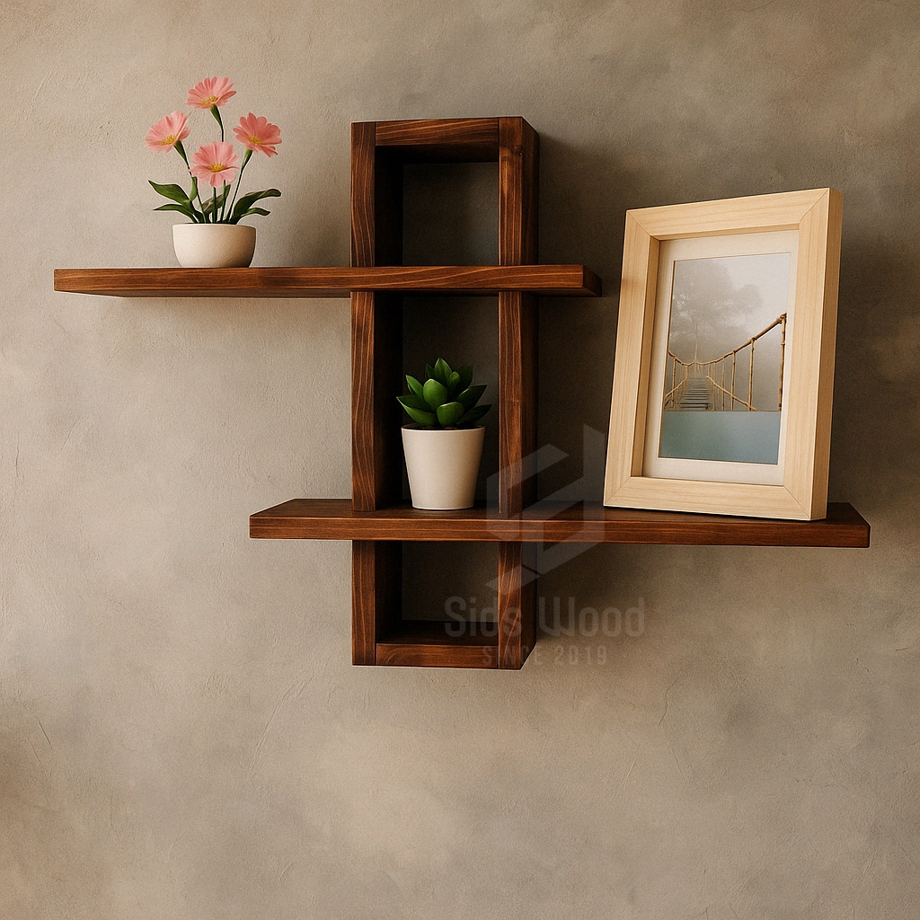 SidsWood [RHD] Rak Hias Dinding Kayu Kotak – Rak Gantung Pajangan Foto & Pot Tanaman