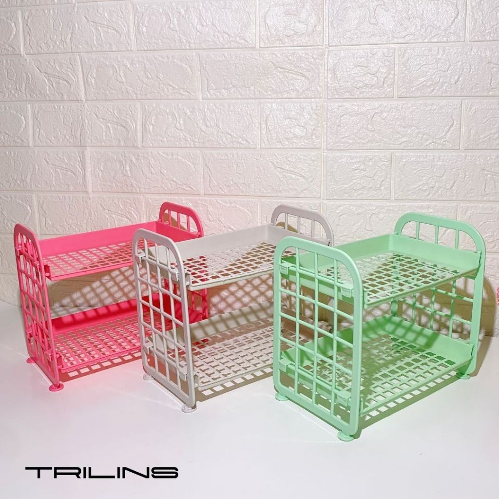 RAK JARING PLASTIK 2 SUSUN Model Kotak Mini Tempat Bumbu Rak Dapur ATK Kosmetik Multifungsi Murah