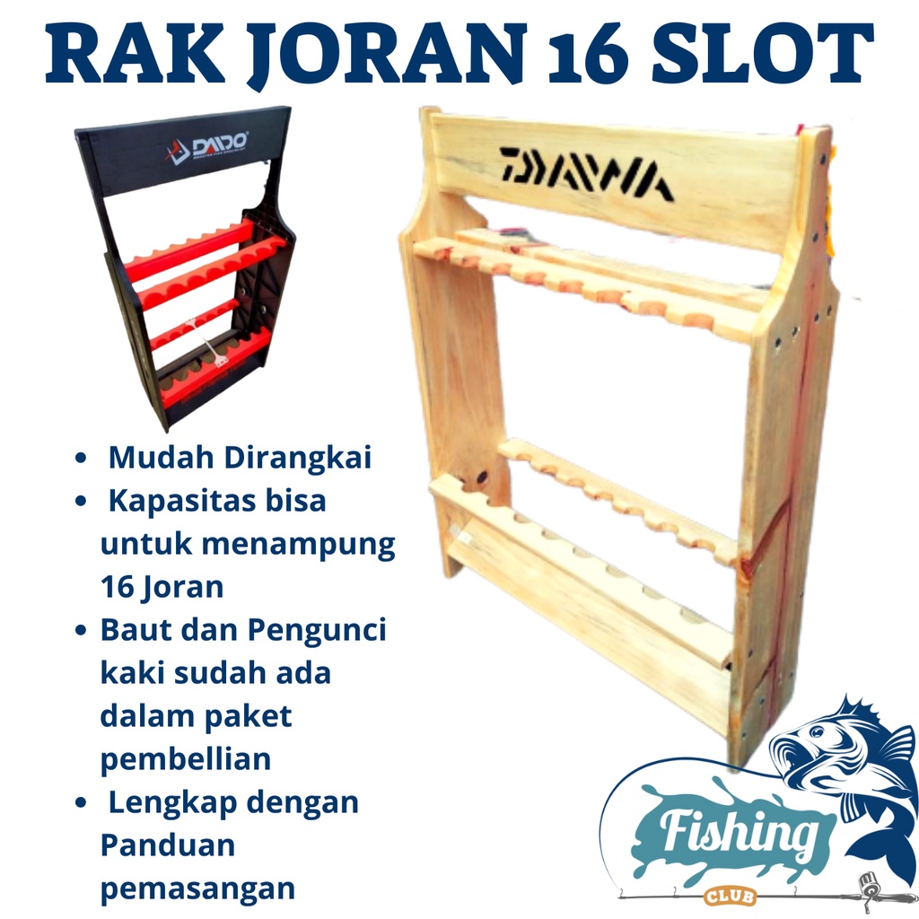 RAK JORAN 16 SLOT Daido Rack ROD Holder Rak Pancing Bahan Kayu Tempat Dudukan Joran