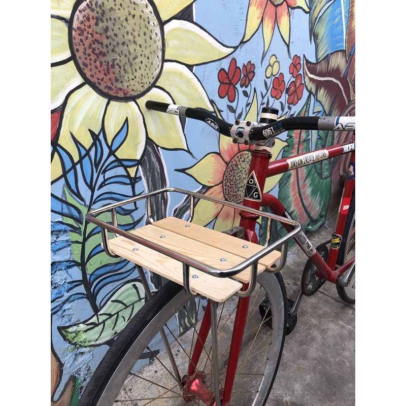 RAK KAYU SEPEDA FRONT RACK FRONTRACK PANNIER KERANJANG KAYU SEPEDA