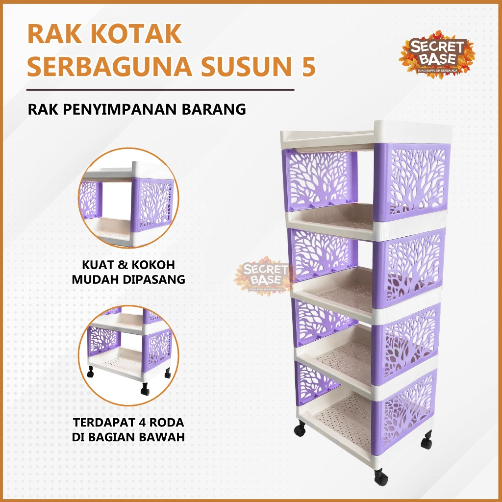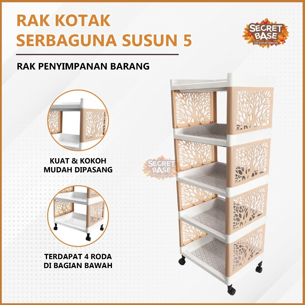 RAK KOTAK 5 SUSUN + RODA - Rak Serbaguna / Rak Portable / Rak Plastik