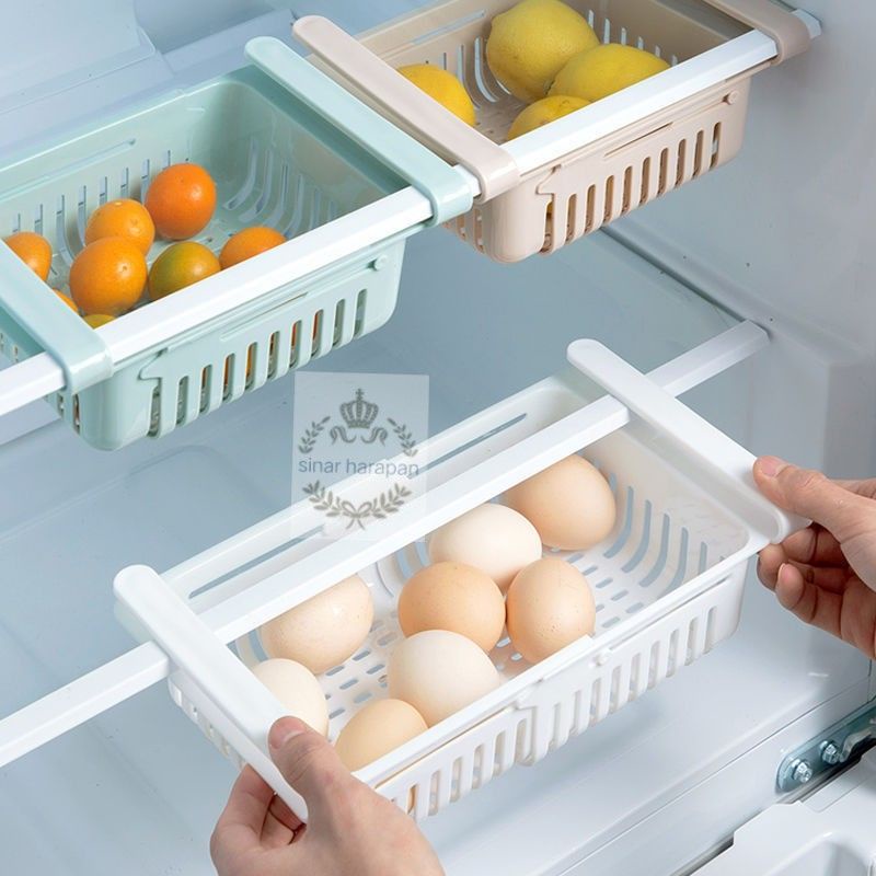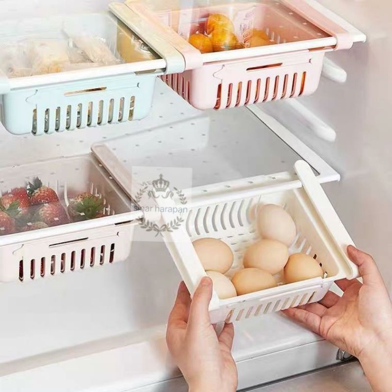 RAK KULKAS MULTIFUNGSI SLIDING STORAGE BOX RAK PENYIMPANAN KULKAS