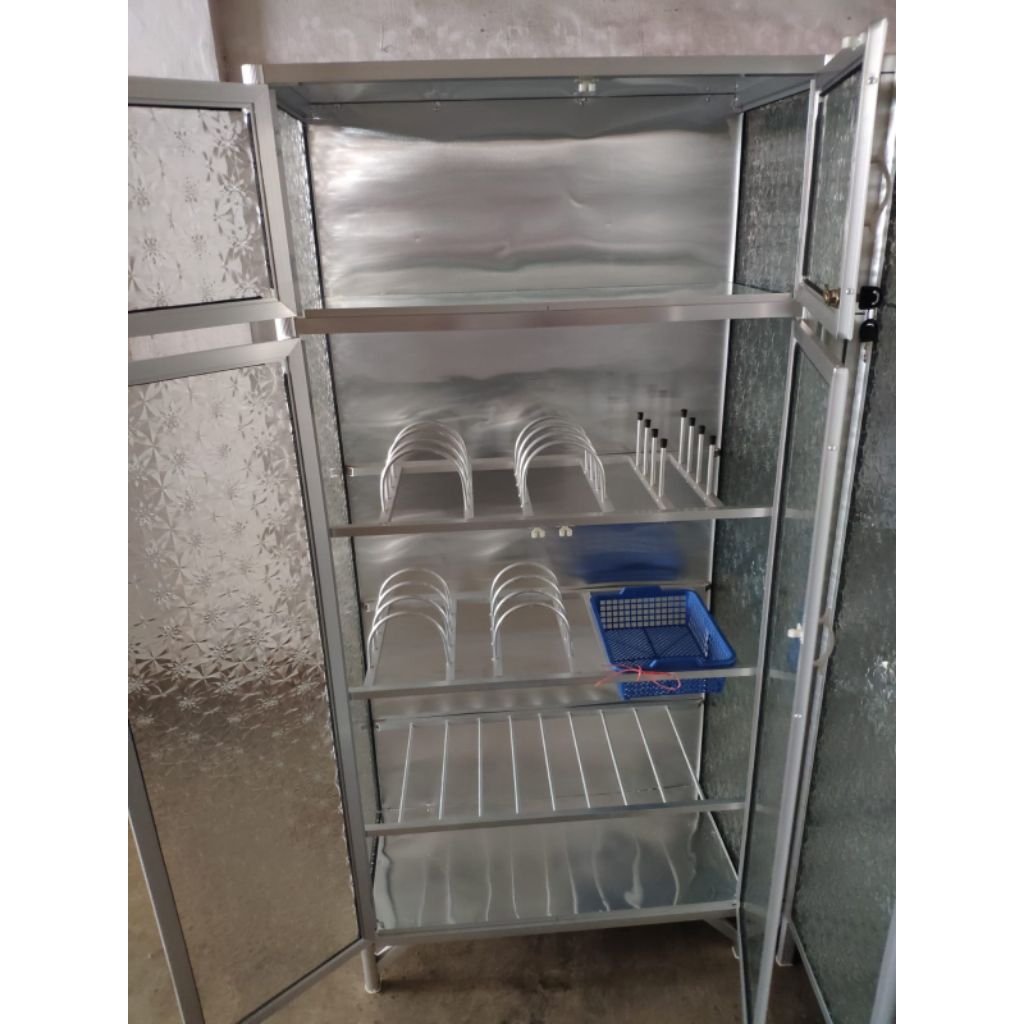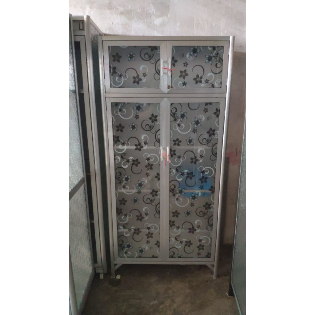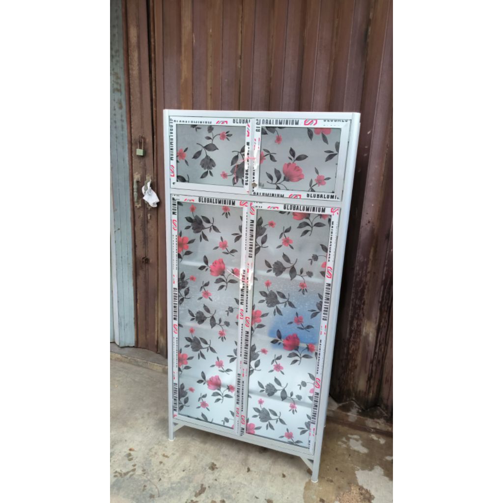 RAK PIRING 2 PINTU FULL KACA MOTIF STIKER / LEMARI CABINET DAPUR