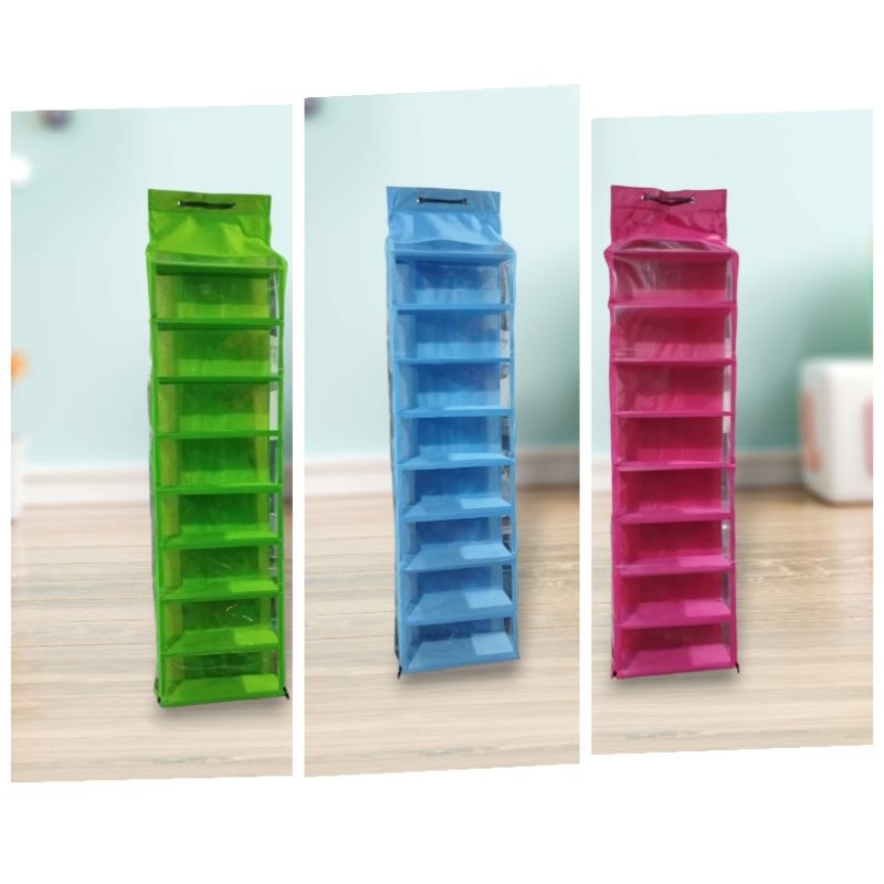 Rak Sepatu Gantung Alas Triplek Full Resleting 8 Susun Warna Polos