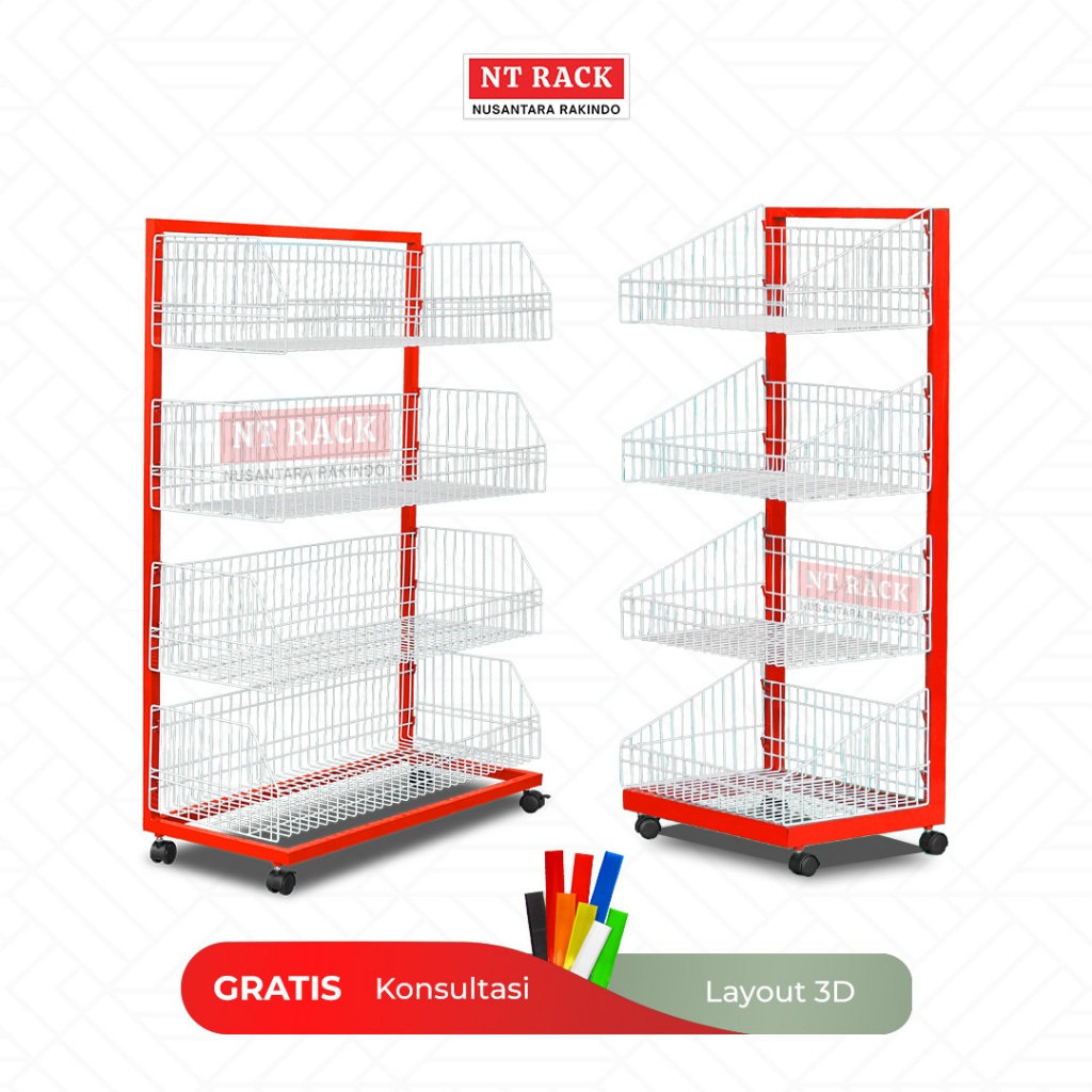 Nusantara Rakindo Rak Snack - Rak Ciki Roti 4 Susun | Rak Display Snack & Kue | Rak Jajanan Serbaguna