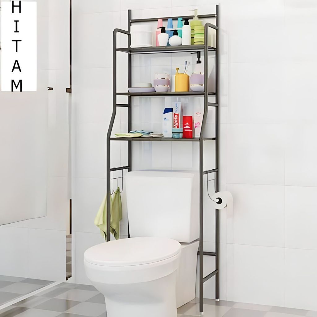 Rak Toilet Organizer Rak Kamar Mandi Rak Kloset WC Duduk Rak Tisu Besi Anti Karat