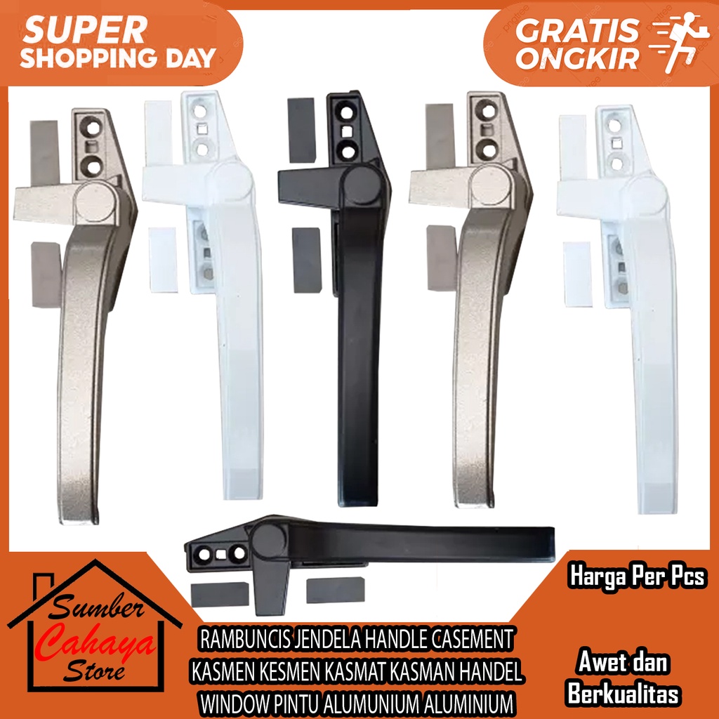 RAMBUNCIS CASEMENT HANDLE GAGANG JENDELA 4 Baut KESMEN KASMEN TARIKAN KUNCI ALUMUNIUM KASMAN KASMANT CASEMANT HANDEL WINDOW ALUMINIUM LOCK KUNCII KAYU BESI HANDEL KANAN KIRI PERANGKAT PINTU CESMEN CASMEN