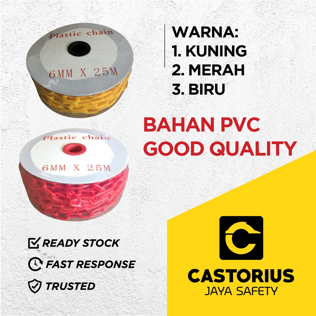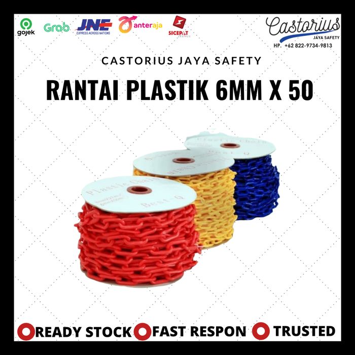 RANTAI PLASTIK 6MM RANTAI PLASTIK PLASTIC CHAIN SAFETY CONE RANTAI - Biru, 6 mm x 50 meter