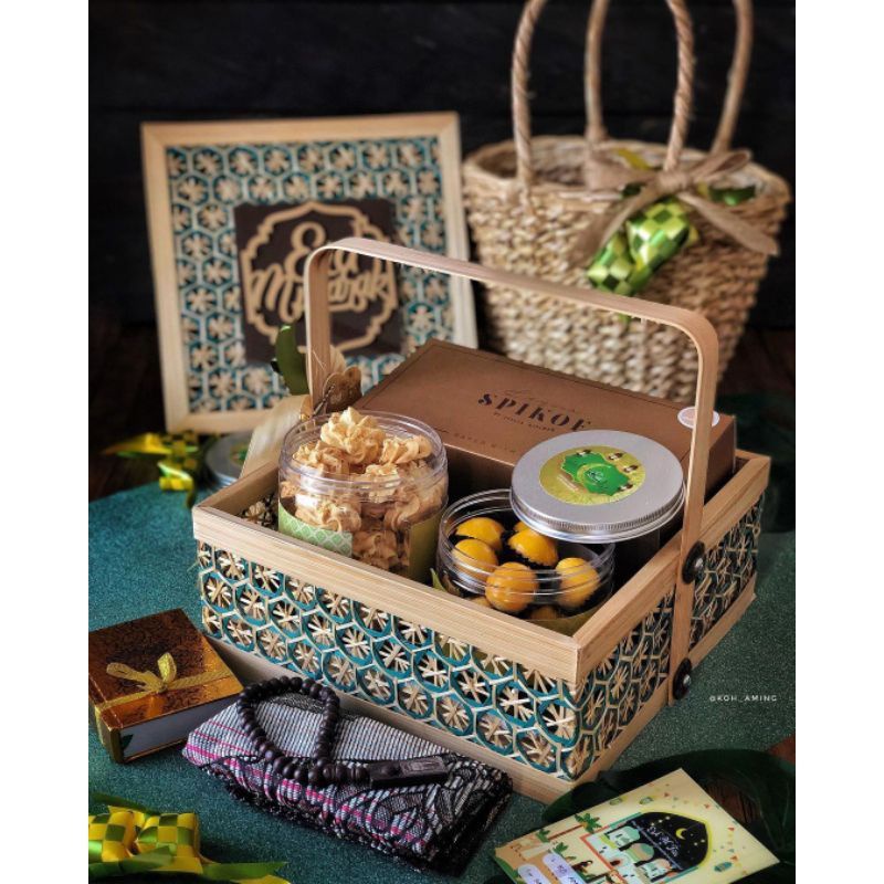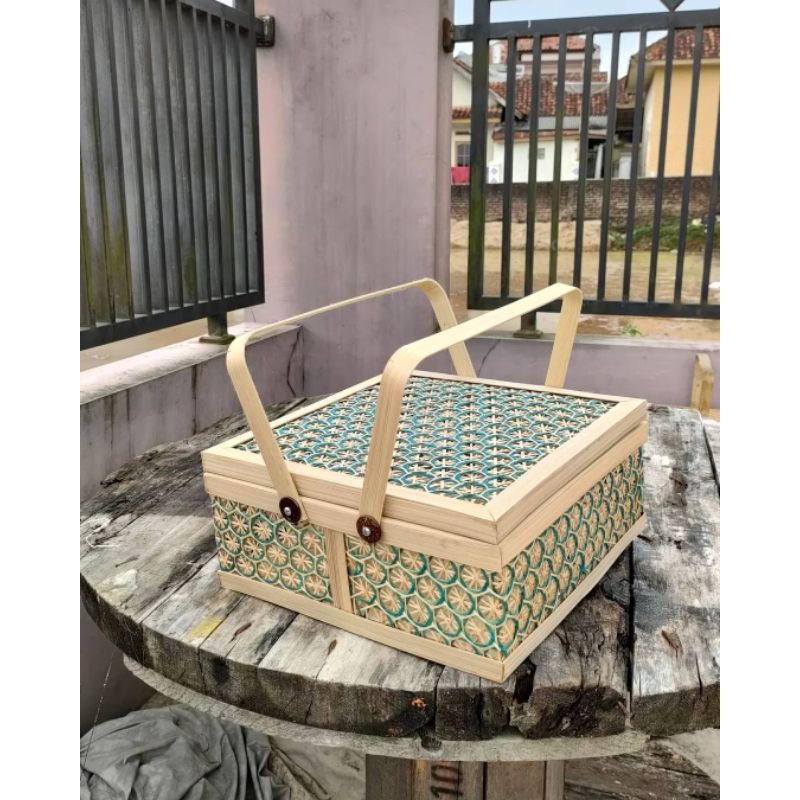 RANTANG BAMBU KOTAK ANYAMAN LABA-LABA/KERANJANG BAMBU/RANTANG BAMBU KOTAK HAMPERS
