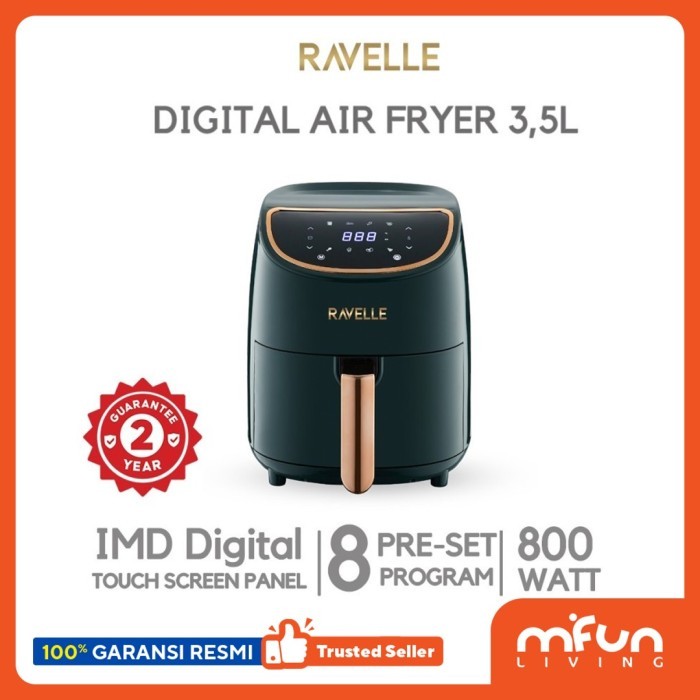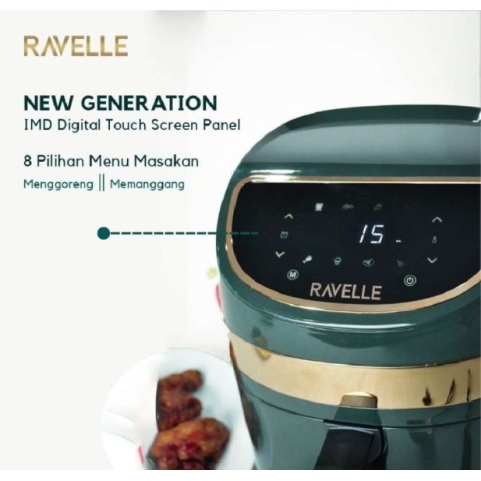 RAVELLE Air Fryer 3,5 liter Low Watt Digital 3,5L Jade