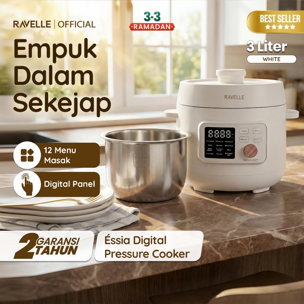 Ravelle - Digital Pressure Cooker 3L Panci Presto Digital 600W Full Touch Screen Stainless steel