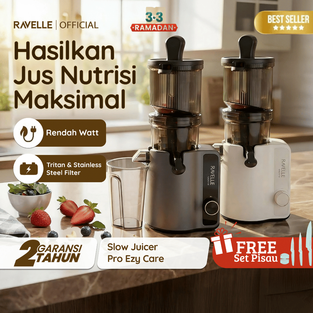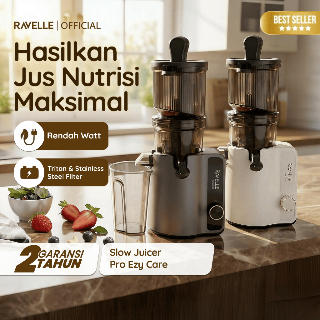Ravelle Premium Slow Juicer Pro Ezy Care Extra Big Mouth Easy Juice Easy Clean Low Watt - Pengejus Buah