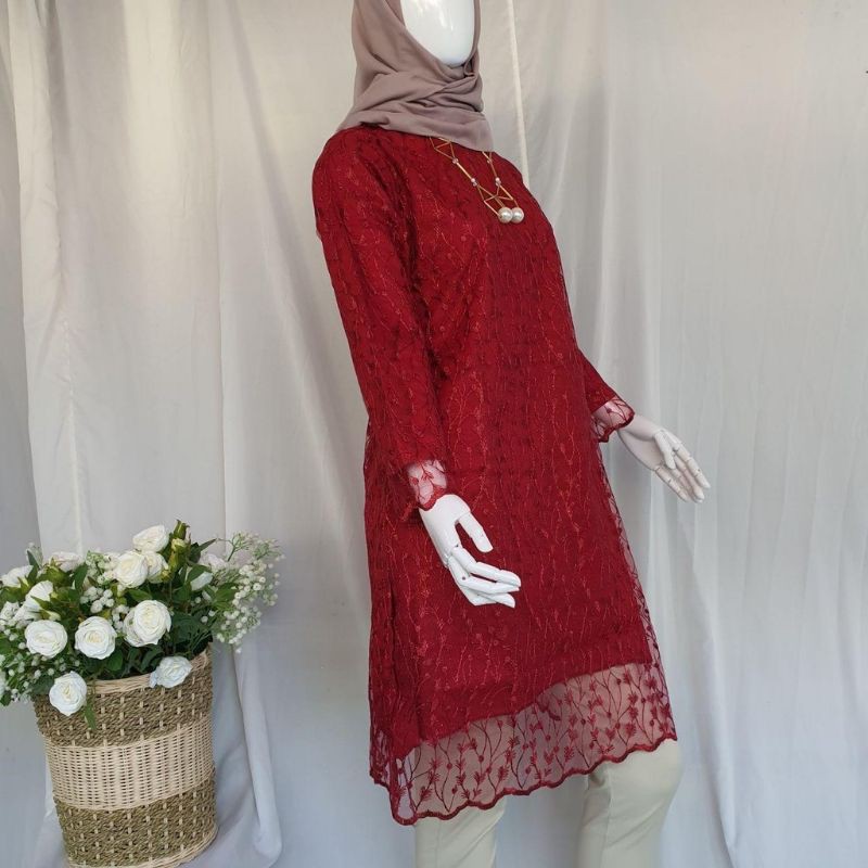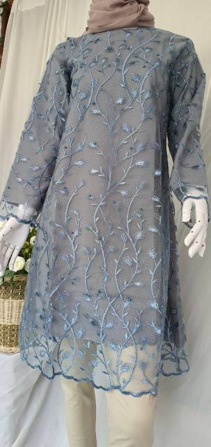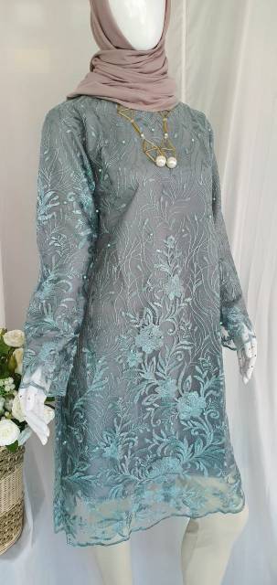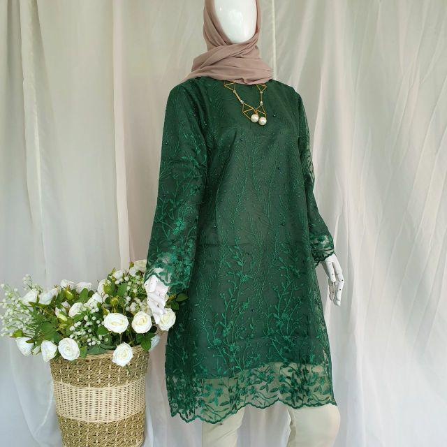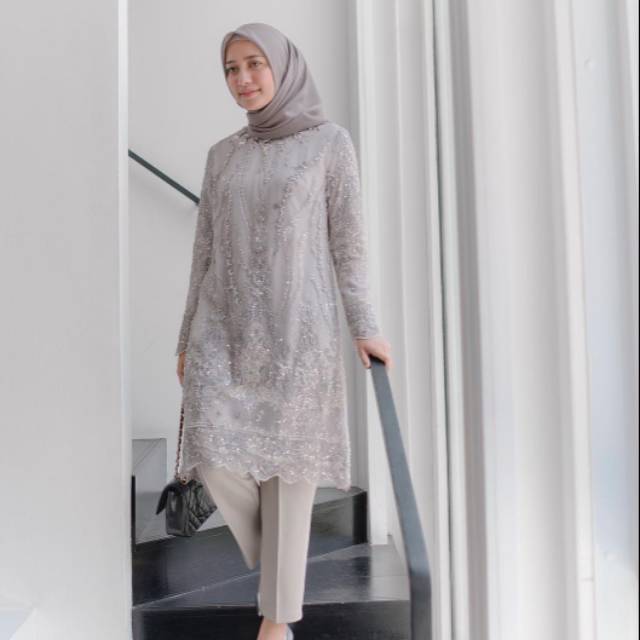 Hijabbstory Ready Miga Tulle Pearl Tunik Saja 100/100 Allsize Tile Kebaya Cantik Kondangan Brukat Ootd Bridesmaid Lvn solo