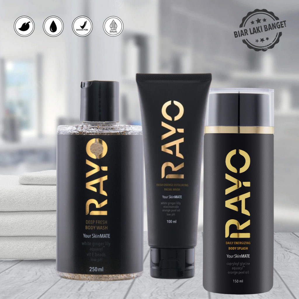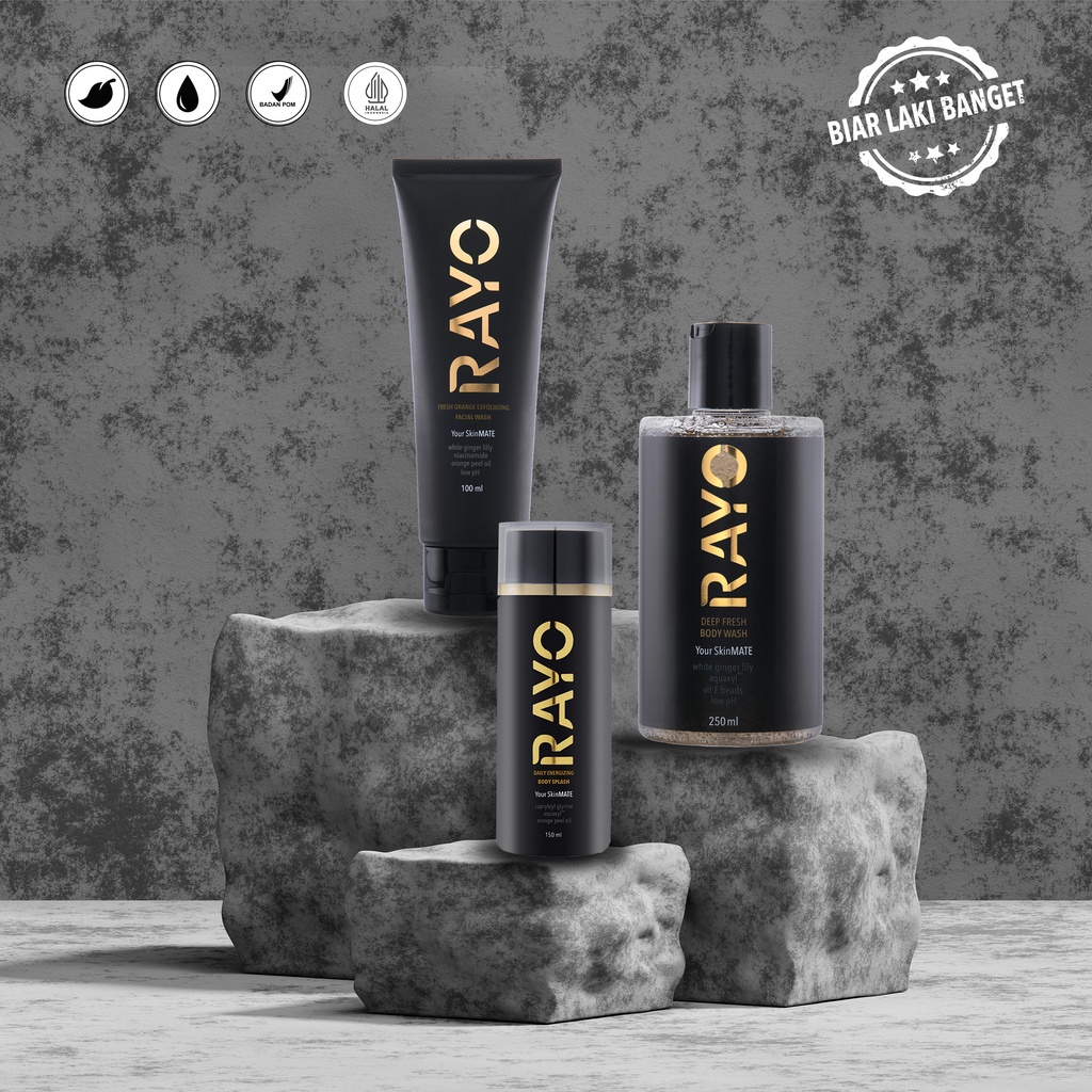 Paket Perawatan Wajah dan Tubuh Pria RAYO - Sabun Mandi, Sabun Wajah dan Splash Cologne
