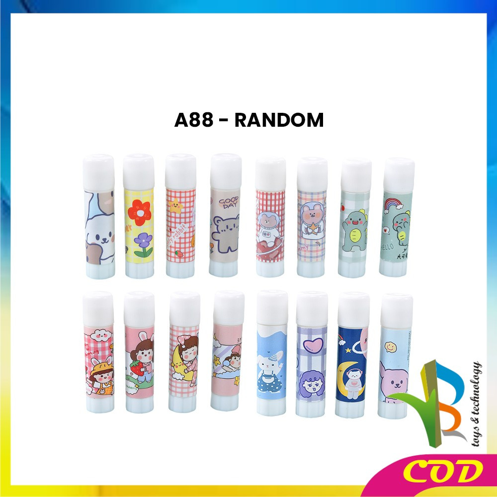 RB-A88 Lem Glue Stick Karakter Lucu Lem Stik Batang Putar Perlengkapan Sekolah Kantor / Lem Kertas Putar Lem Perekat Kertas Padat Motif Lucu