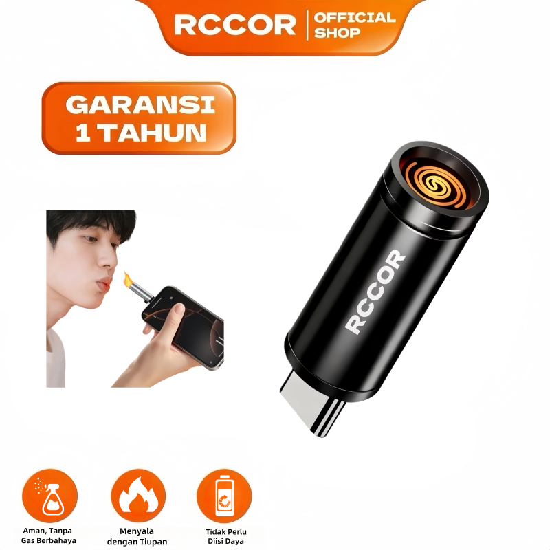RCCOR Lighter Mini USB Type-C - Tiup Langsung Nyala, Aman & Praktis untuk Mobil dan Outdoor