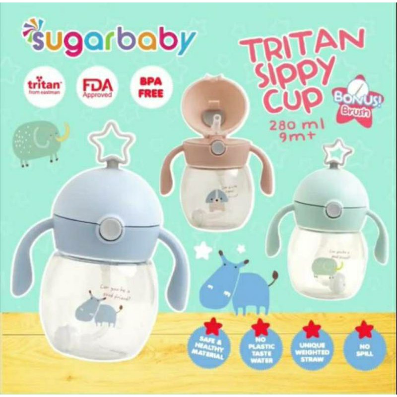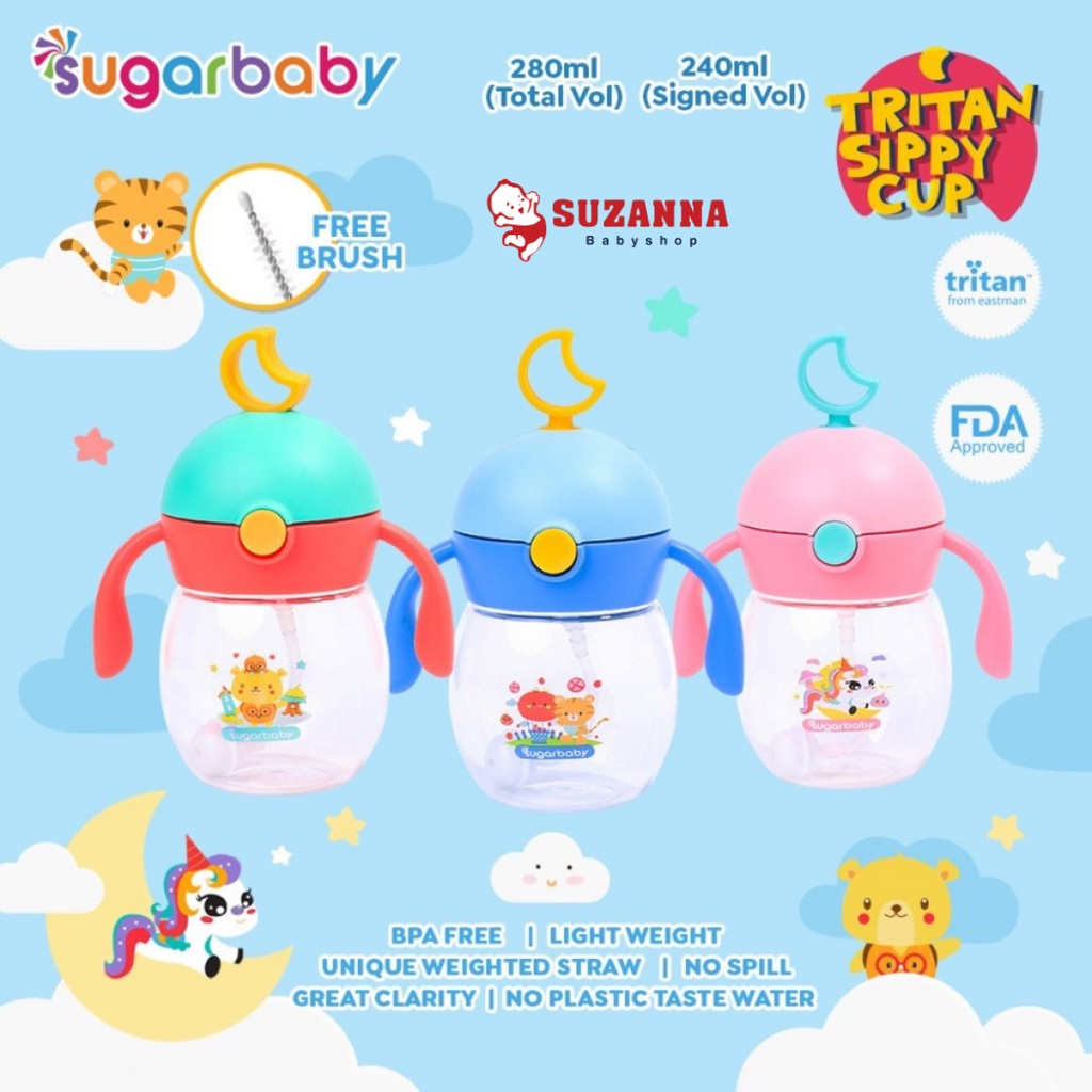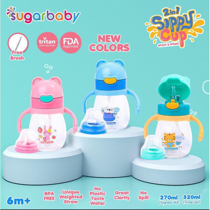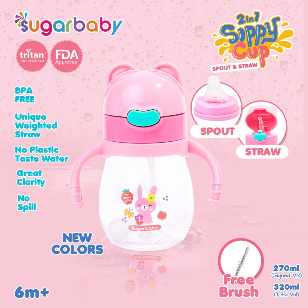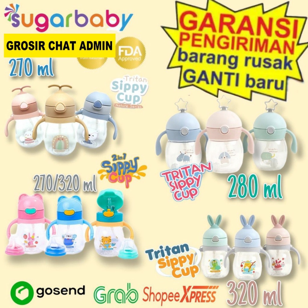 READY BANDUNG SUGAR BABY SUGARBABY SIPPY CUP 2 IN 1 BOTOL MINUM TRITAN KID BOTTLE 2IN1 STAR DEER MOON TKBST RABBIT NATURE