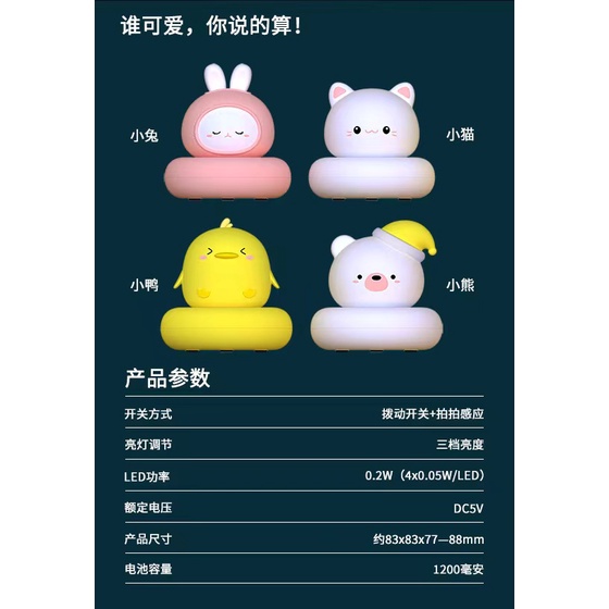 READY - Lampu Tidur Cute Karakter unik USB Portable LED Light Lamp - FREE BUBLEWRAP