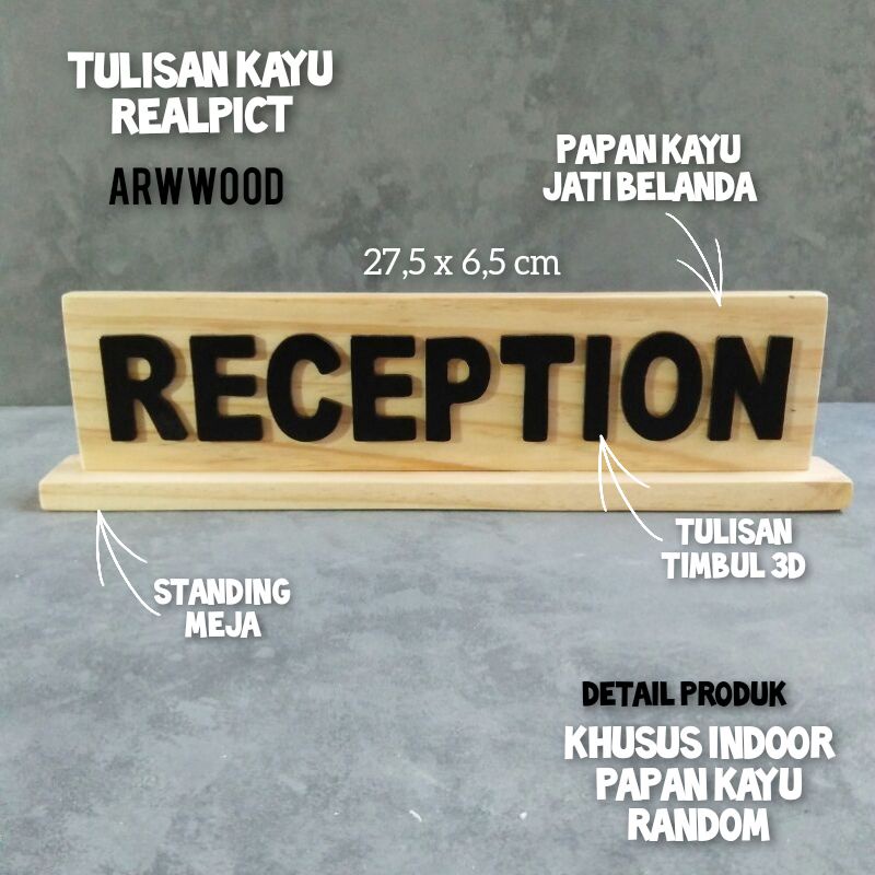 READY TULISAN RECEPTION STANDING MEJA TULISAN TIMBUL KAYU JATI BELANDA NATURAL