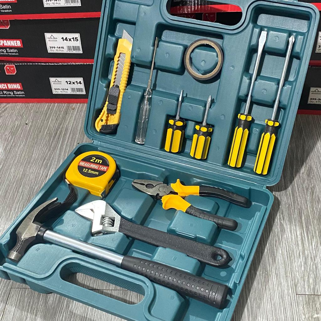 REAL PICT!! Toolset Toolbox Toolkit Kotak Perkakas 8in1 Alat Pertukangan 8pcs Bukan Tekiro Uchia Obeng Palu Tang Cutter Lakban Isi 8 Pcs