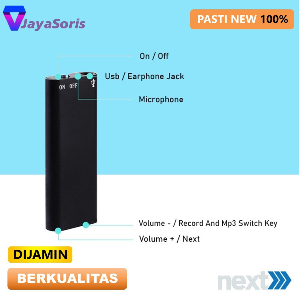 RECORDER VOICE ALAT PEREKAM SUARA MINI DIGITAL VOICE TERSEMBUNYI SADAP SUARA FLASHDRIVE 8GB JS22