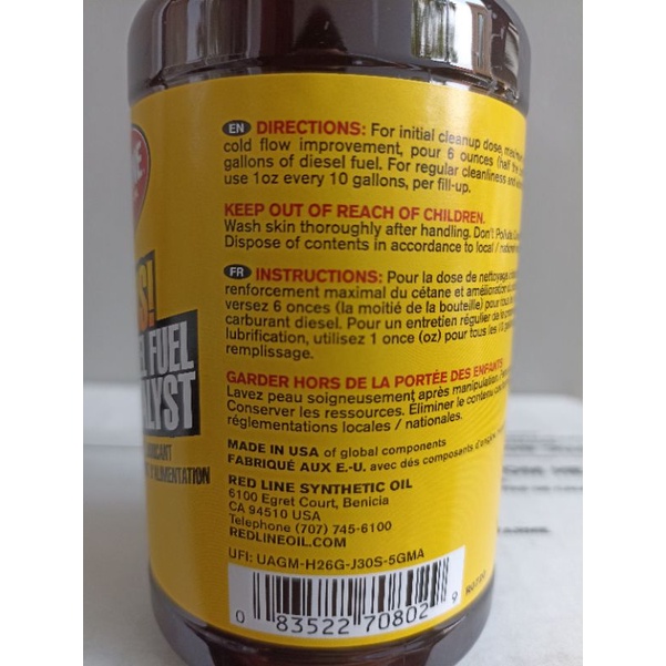 RED LINE 85 PLUS DIESEL FUEL CATALYST 12oz 355ml Additive Solar Ori
