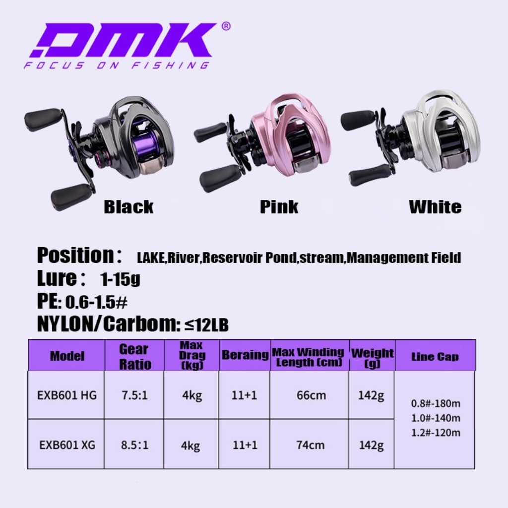 REEL BC DMK CHEETAH DC PLUS RATIO 8.5:1 HANDLE KIRI DRAG CLICKER
