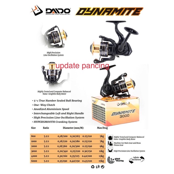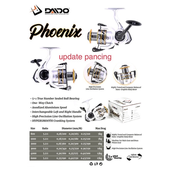 REEL DAIDO ARES / DYNAMITE / PHOENIX sudah one way , karet di drag spool 800, 1000, 2000, 3000, 4000, 6000