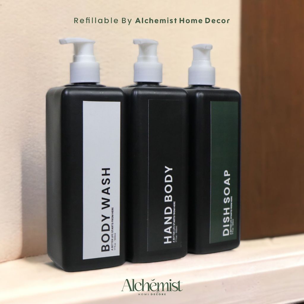 REFIL BOTOL PUMP 500ML WARNA HITAM FREE STICKER KOTAK AESTHETIK FREE STICKER / BOTOL SABUN MANDI ISI ULANG TEMPAT WADAH BODY WASH CONDITIONER HAND LOTION HAND SOAP / REFIL BOTOL PUMP PLASTIK 500ML FREE STICKER