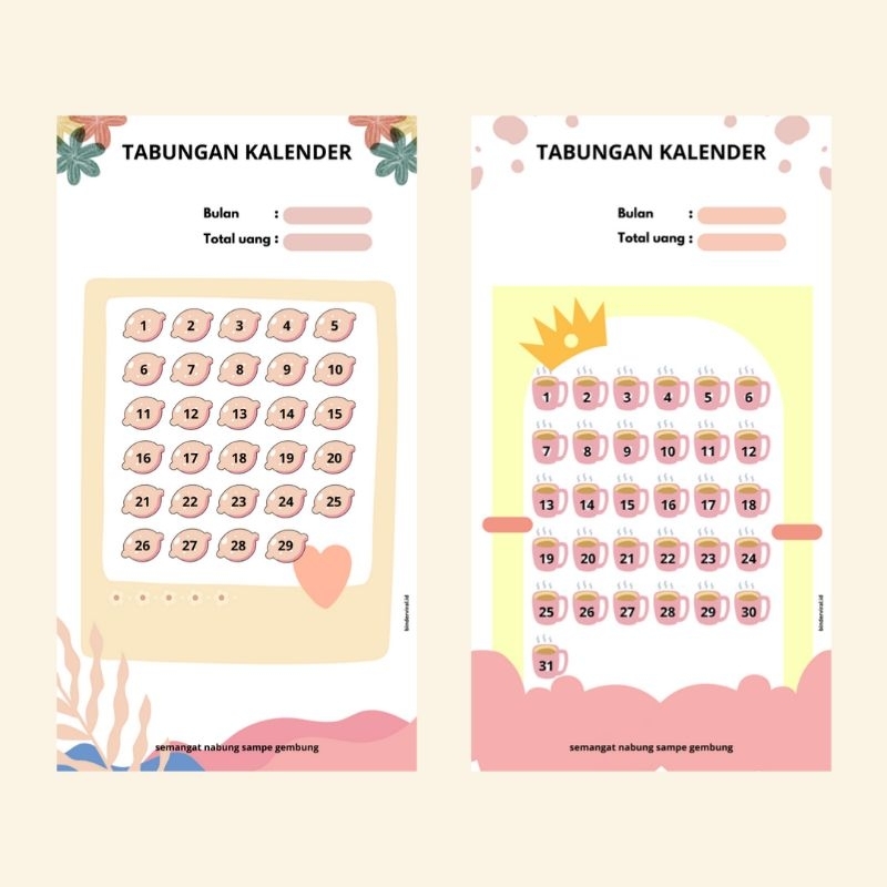 REFILL Tabungan kalender ( 12 lembar + 2 cover + 12 stiker bulan )