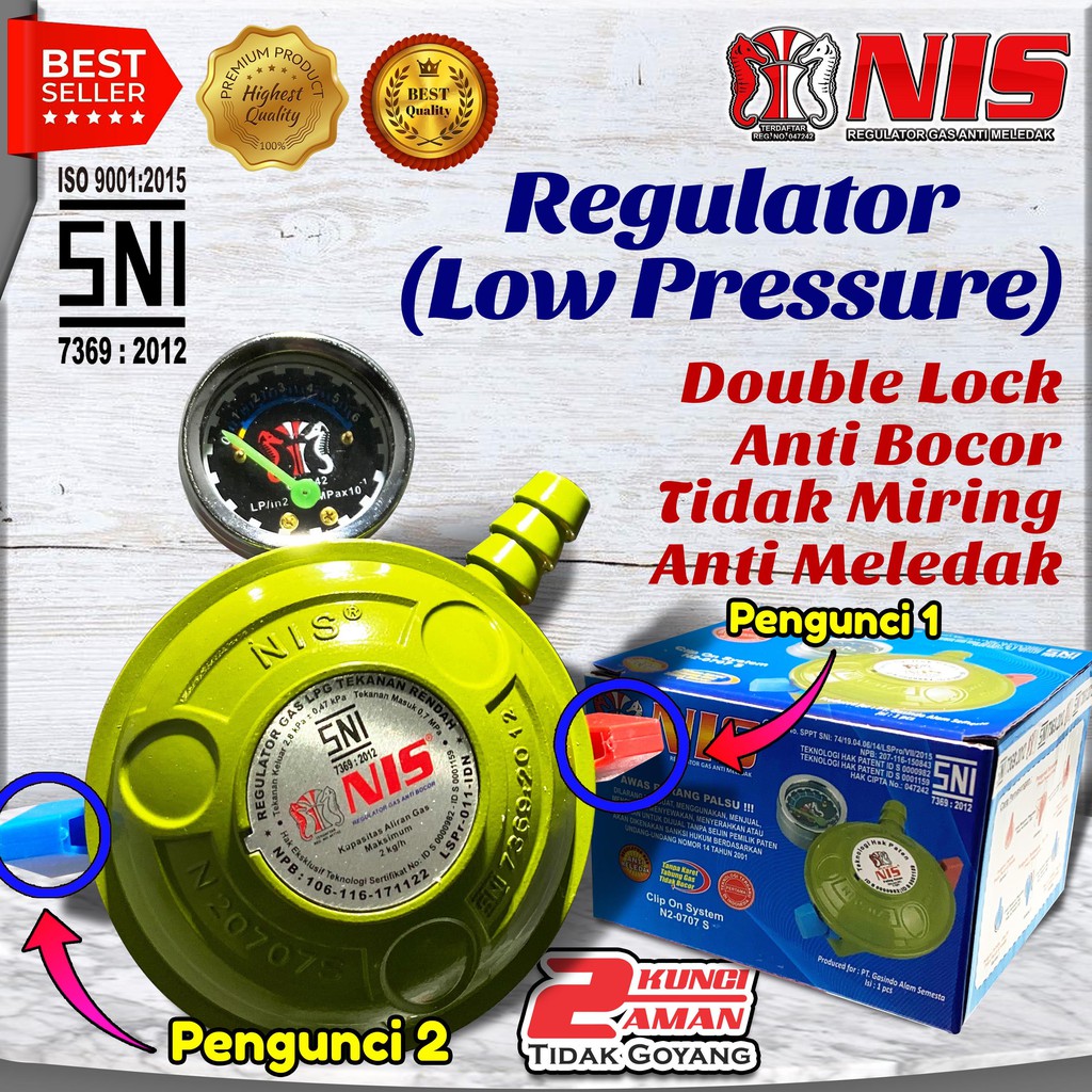 REGULATOR GAS NIS 2 PENGUNCI/DOUBLE LOCK - DENGAN METERAN