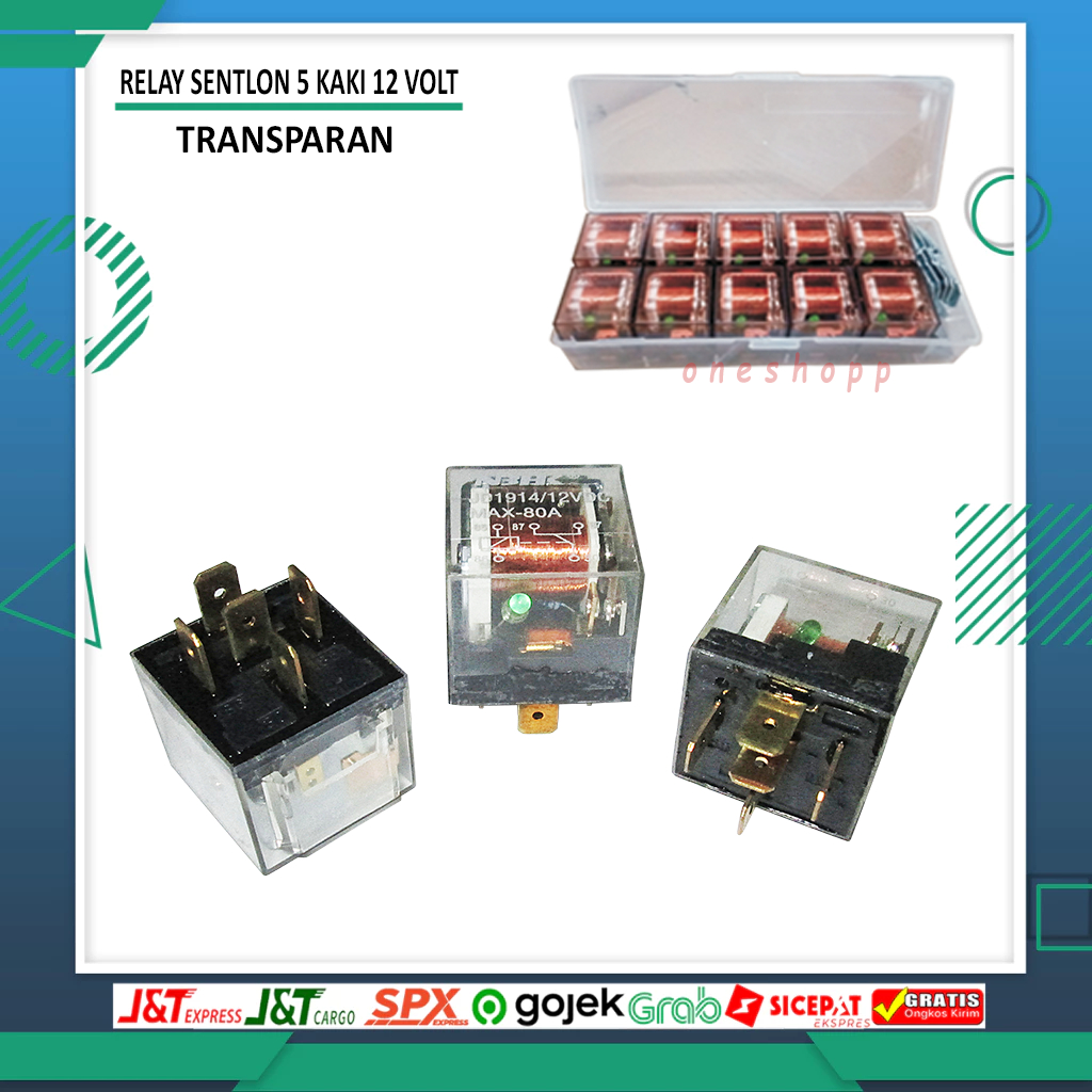 RELAY 4 KAKI 12V 80A RELAY 5 KAKI 12V 80A RELAY TRANSPARAN LED INDIKATOR 1 PCS