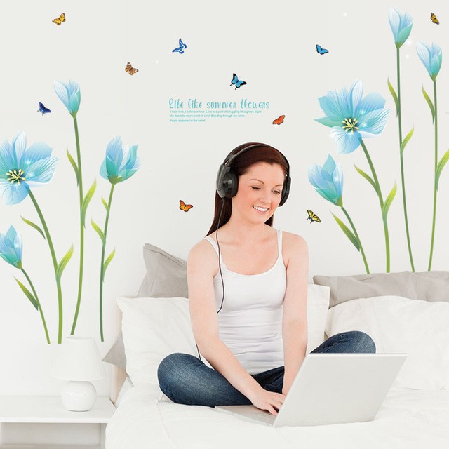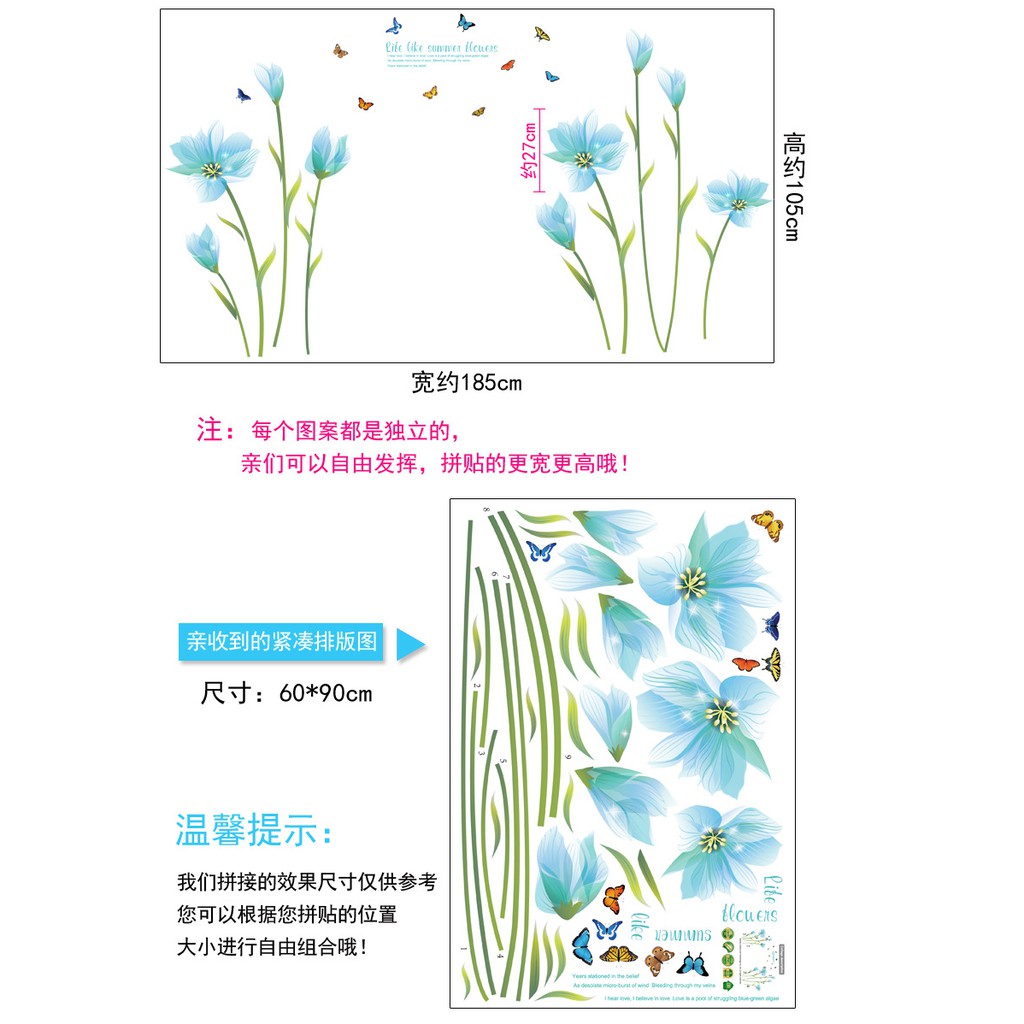 RELIZA WALL STICKER BUNGA BIRU BLUE FLOWERS STIKER DINDING SK9029