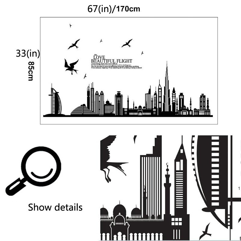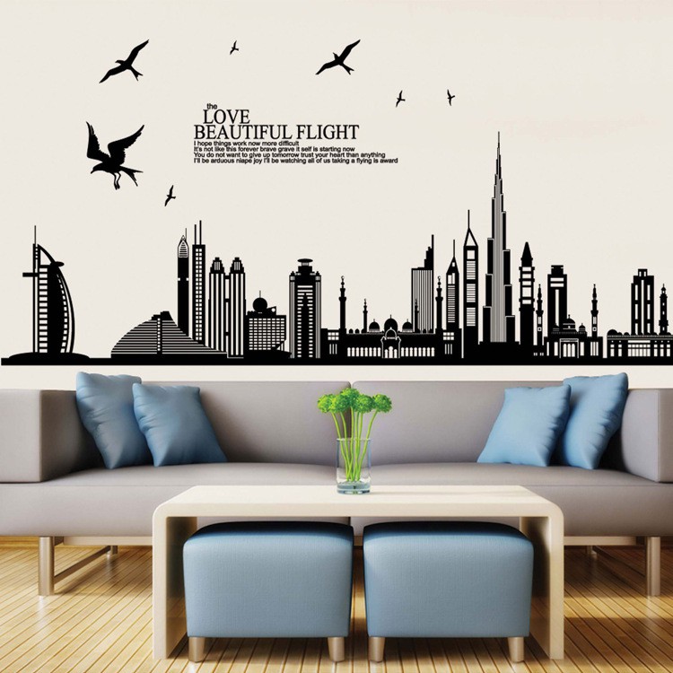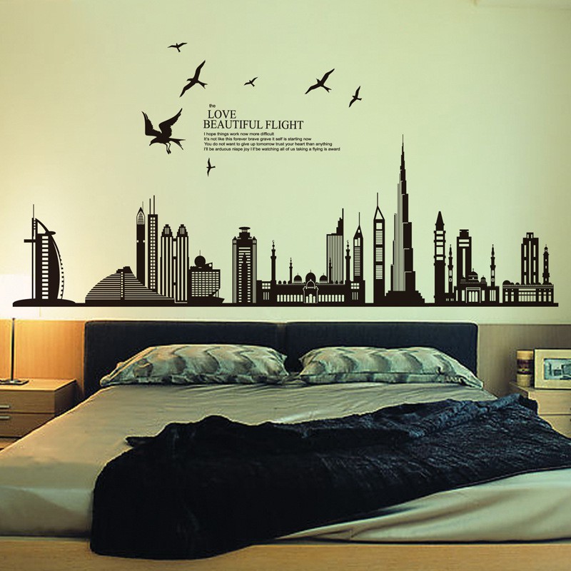 RELIZA WALL STICKER DUBAI SILUET KOTA CITY TOWN HITAM BLACK STIKER DINDING JM7280