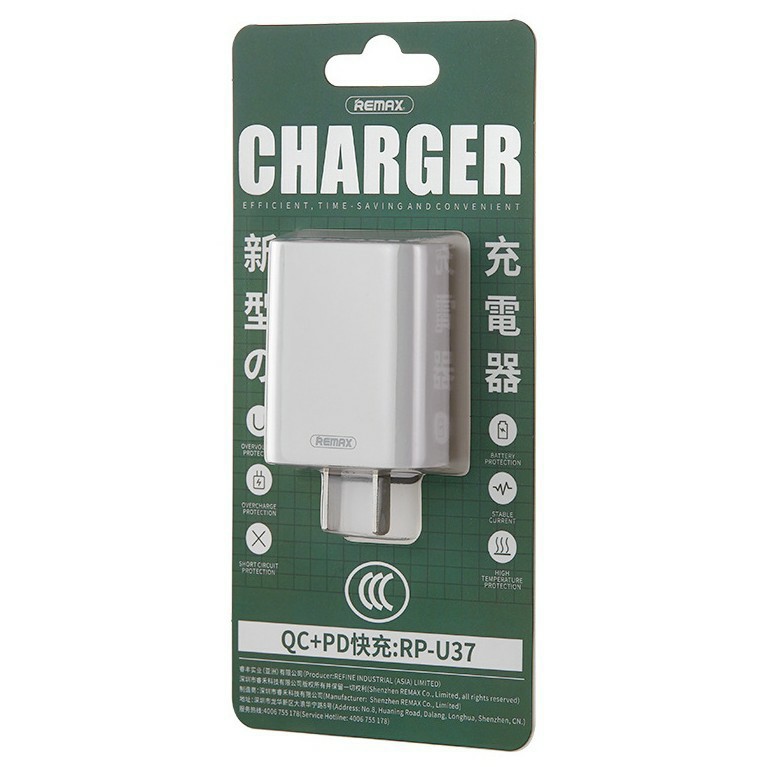 REMAX Simple Series QC 3.0 PD Fast Charging Adapter RP-U37