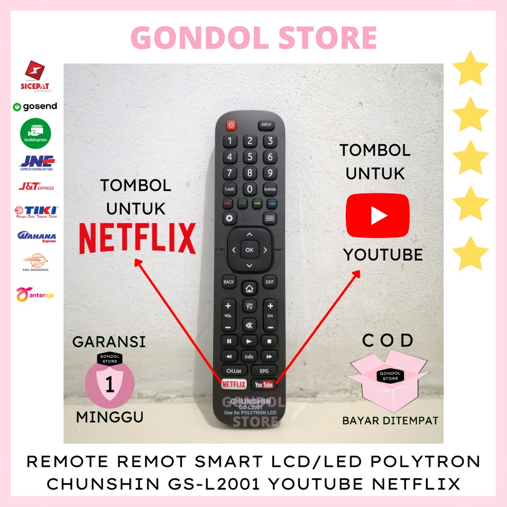 REMOTE TV POLYTRON SMART TV LCD/LED POLYTRON SEMUA TIPE BISA PAKAI CHUNSHIN GS-L2001 GROSIR MURAH YOUTUBE NETFLIX