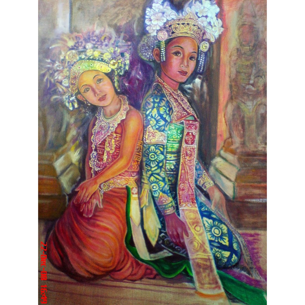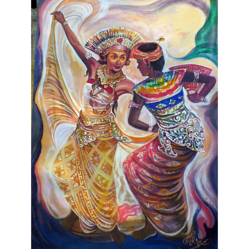 REPRO DIGITAL LUKISAN PENARI BALI LEGONG BALINESE TRADITIONAL DANCER PAINTING TARIAN DANCING MINIMAL