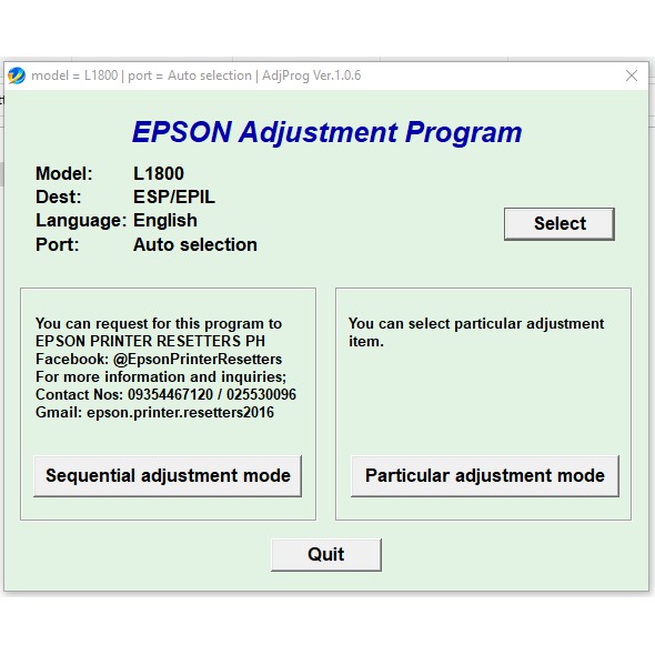 RESETTER EPSON L1800 A3+ ADJUSTMENT PROGRAM